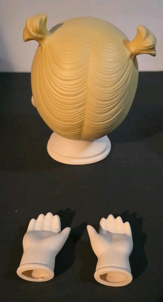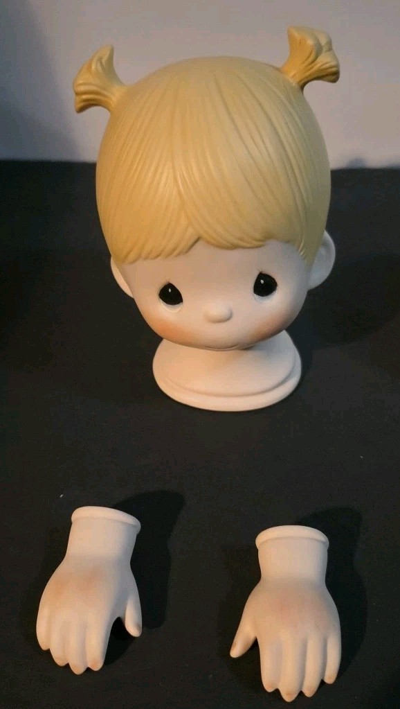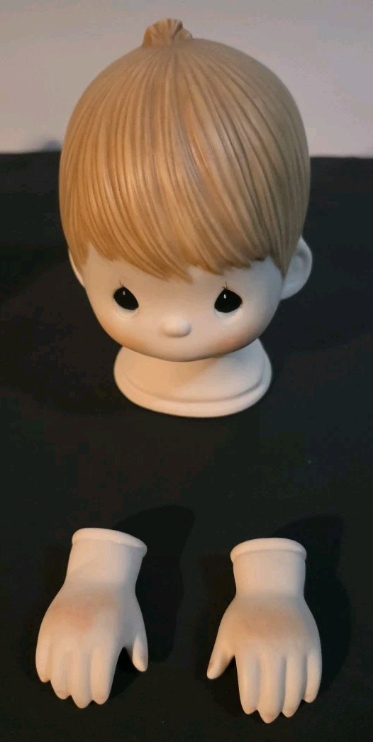 как выглядит Porcelain Bisque Girl/Boy Doll Head Hands Painted Face With Hands/Pattern HTF фото