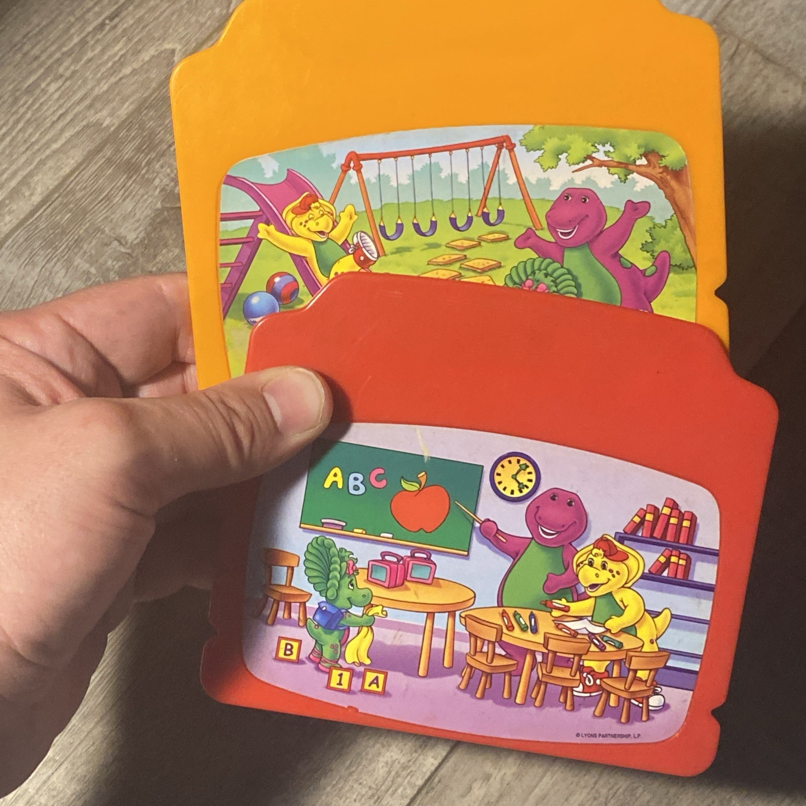 как выглядит VINTAGE Barney And Friends Kids Learning Laptop Toy - 2 REPLACEMENT STORY CARDS фото