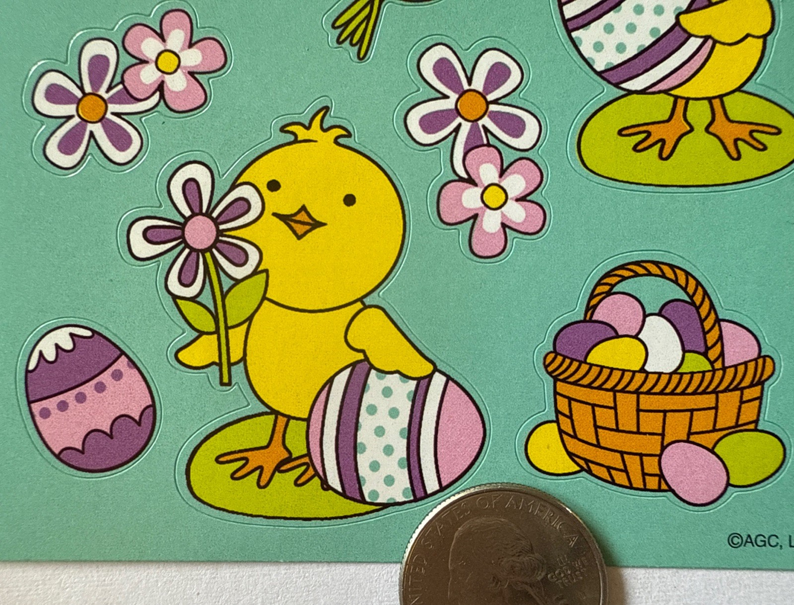 как выглядит CHICK W/EASTER EGG Stickers 12pc Holiday Flowers Colored Eggs Card Making фото