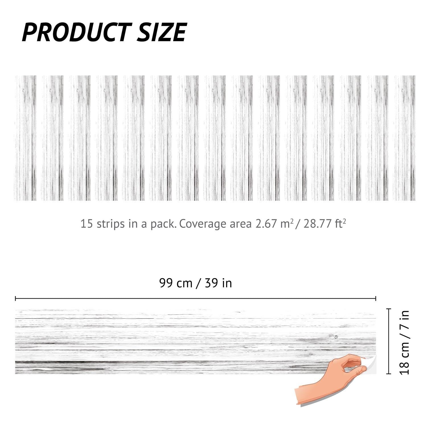 Peel and Stick Stair Riser Decals - 15 Strips, 39 x 7.1, White Weathered Ru...