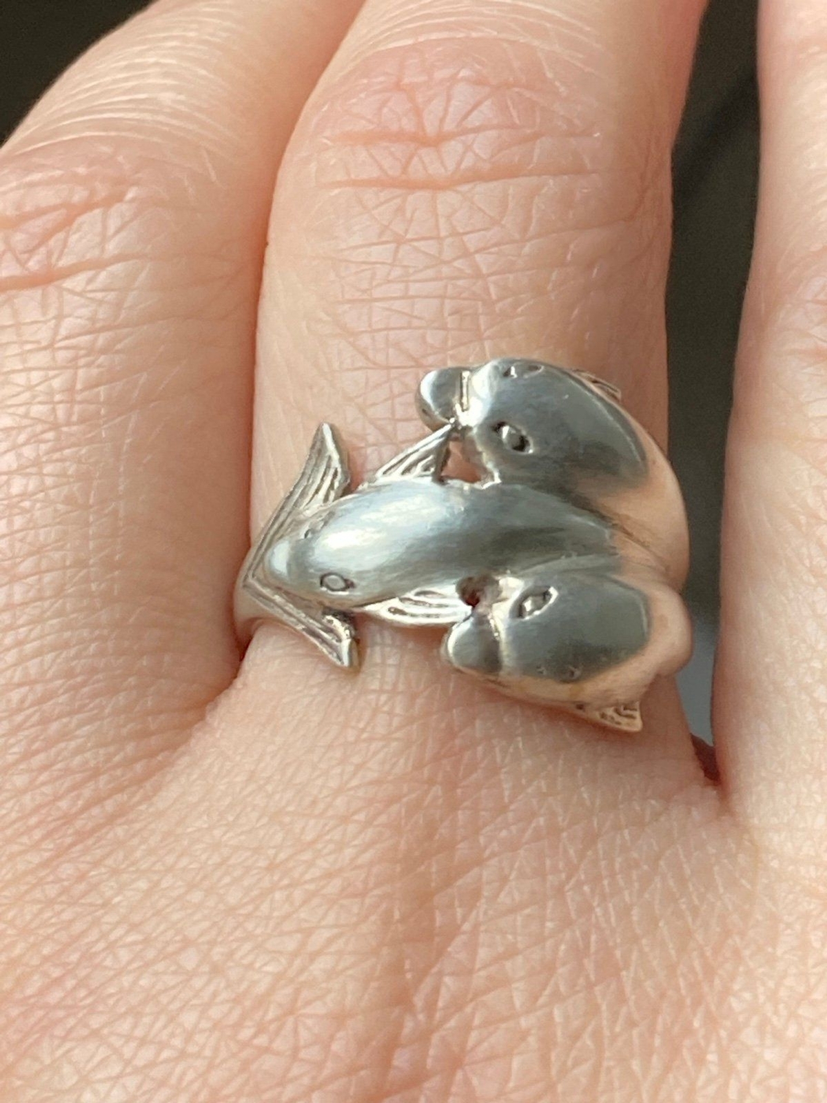 925 sterling silver 3 dolphin ring size 6