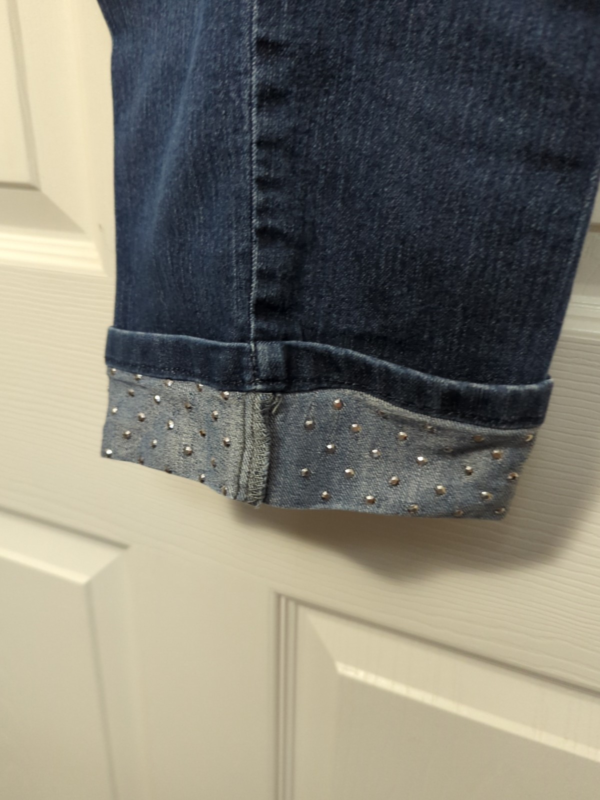 как выглядит JM Collection Embellished Cuff Zip Up Capri Pants Size 12 EUC BEAUTIFUL BLUE фото