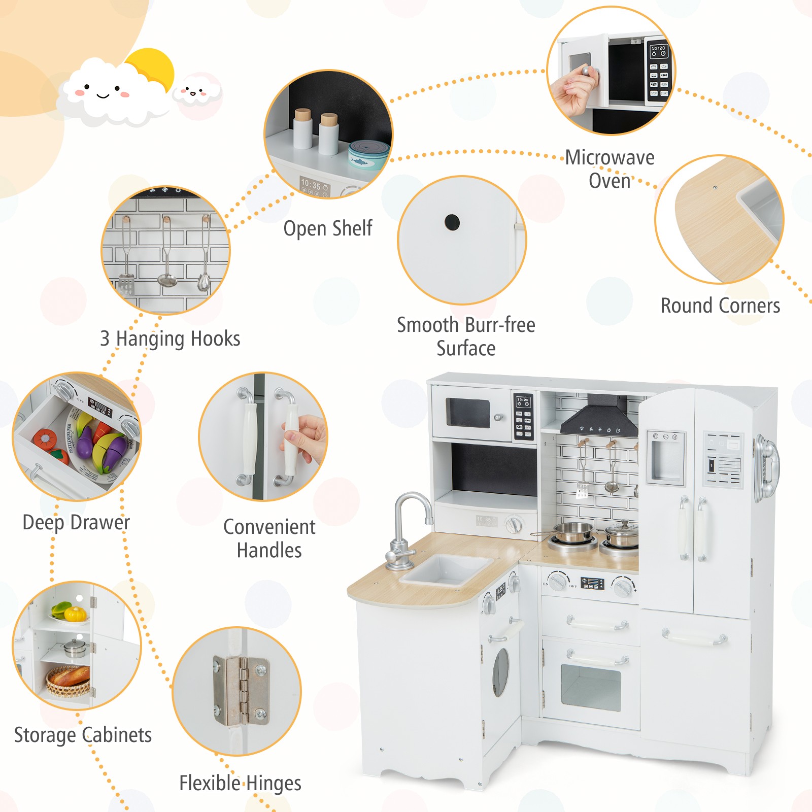 Kid s Corner Kitchen Playset Wooden Chef Play w/ Stove Utensils Refrigerator
