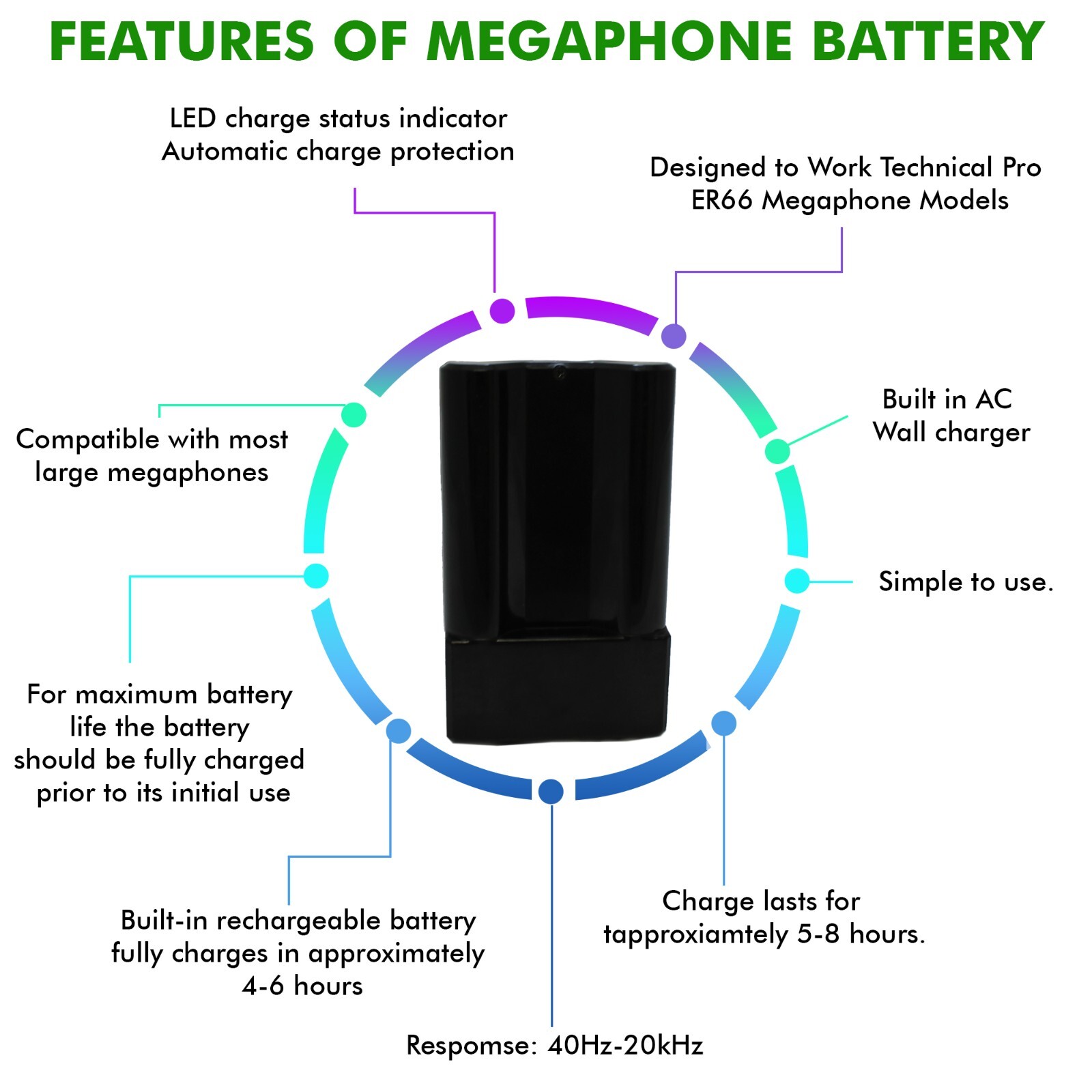 Megaphone Battery Rechargeable Wall Charger werks with Pyle Tpro