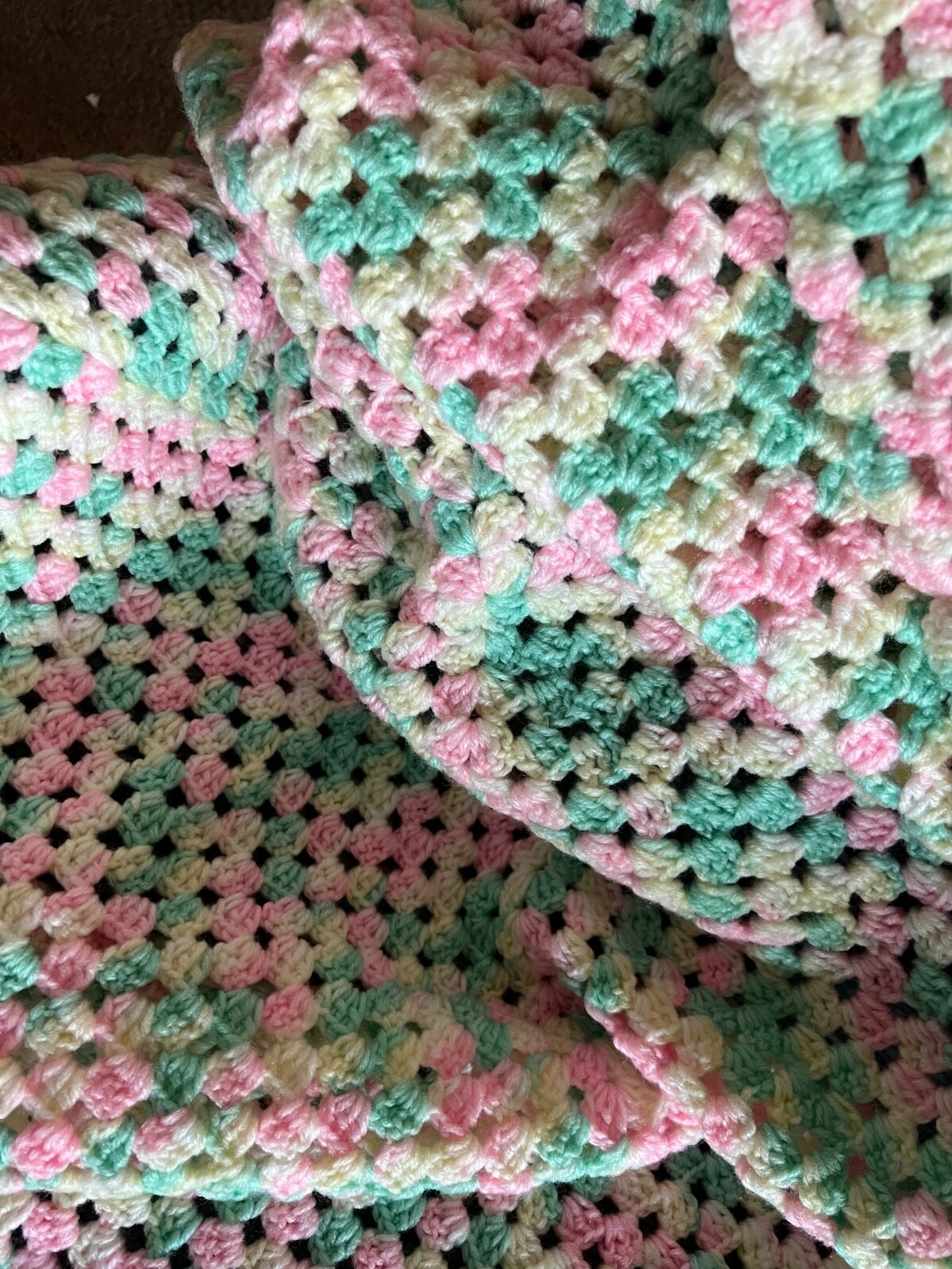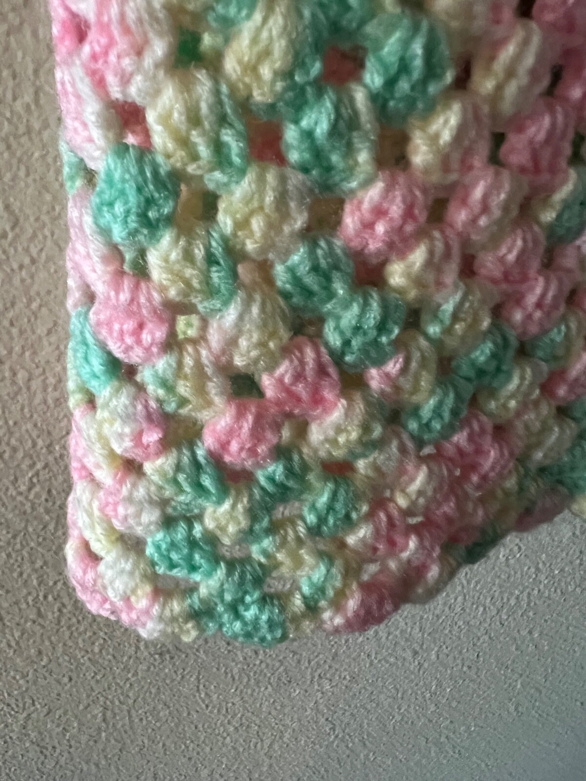 Brand New Handmade Crocheted Pastel Baby Blanket Multi Color 38 x 38