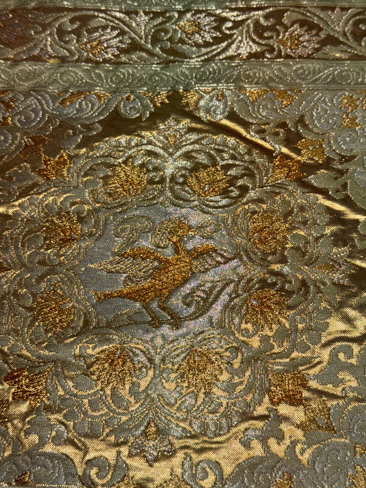как выглядит Japanese Vintage Kimono Fukuro Obi silk green expensive embroidery dirt 166x11in фото