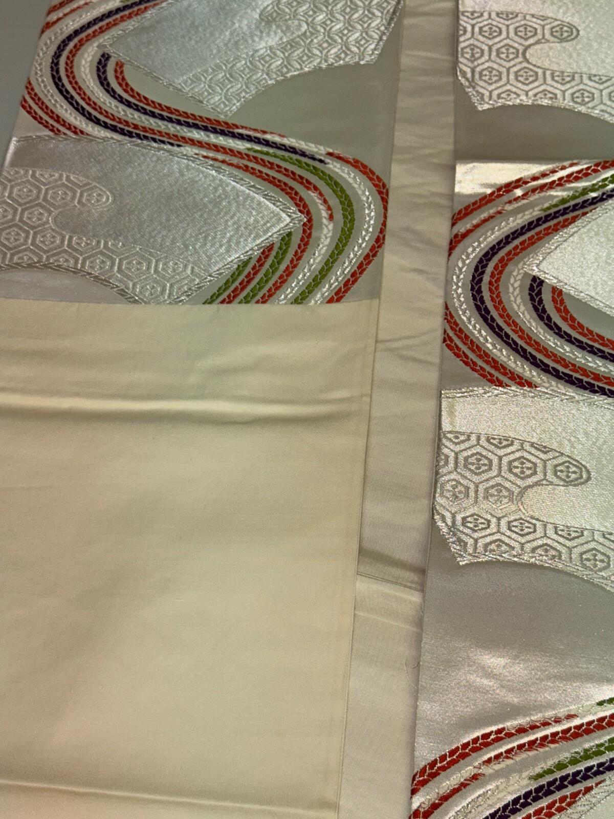 как выглядит Japanese Vintage Kimono Fukuro Obi silk silver expensive embroidery 168.5x12.2in фото