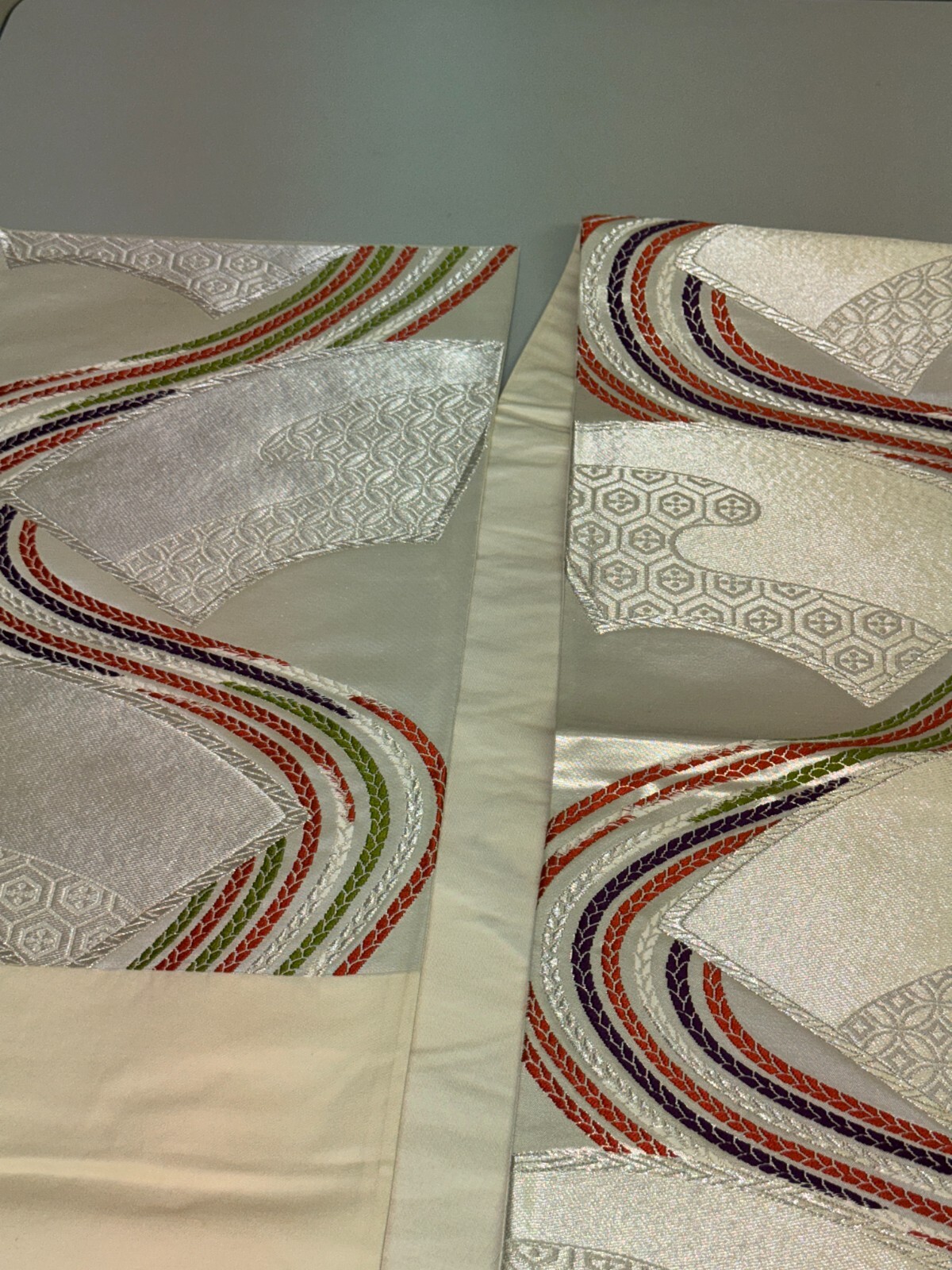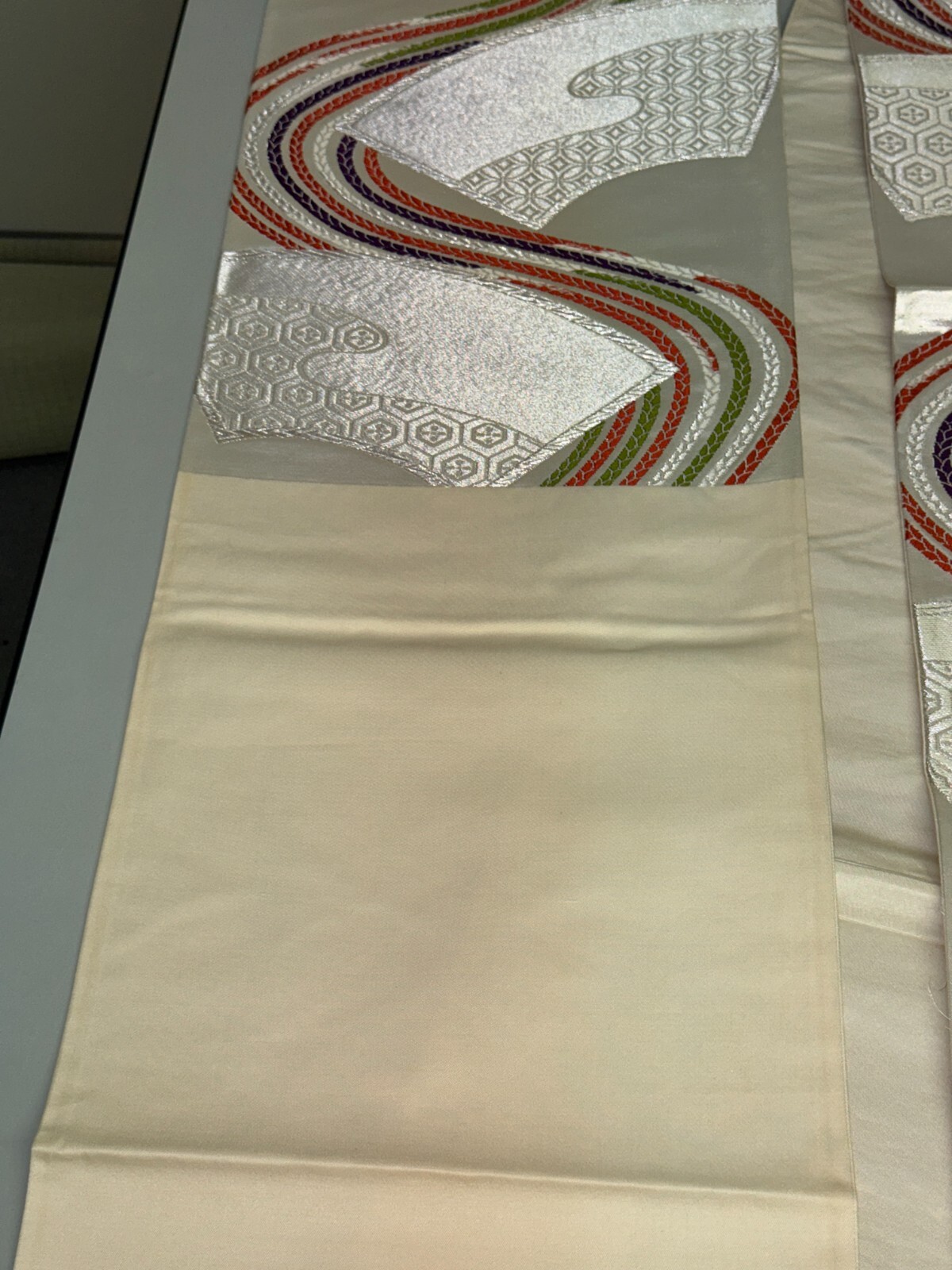 Japanese Vintage Kimono Fukuro Obi silk silver expensive embroidery 168.5x12.2in