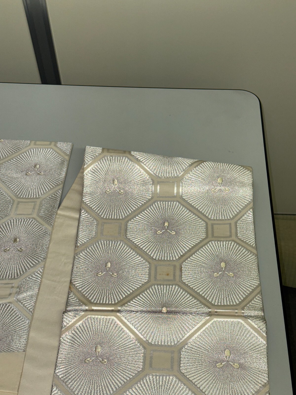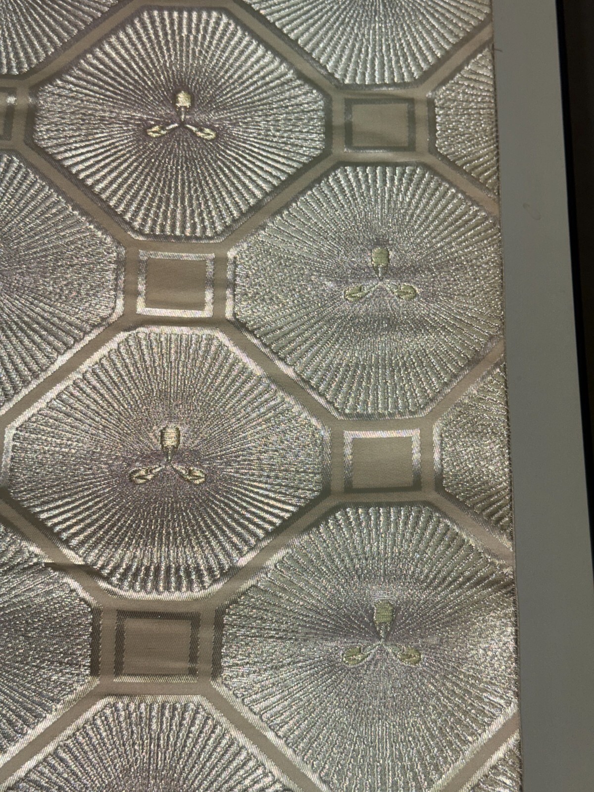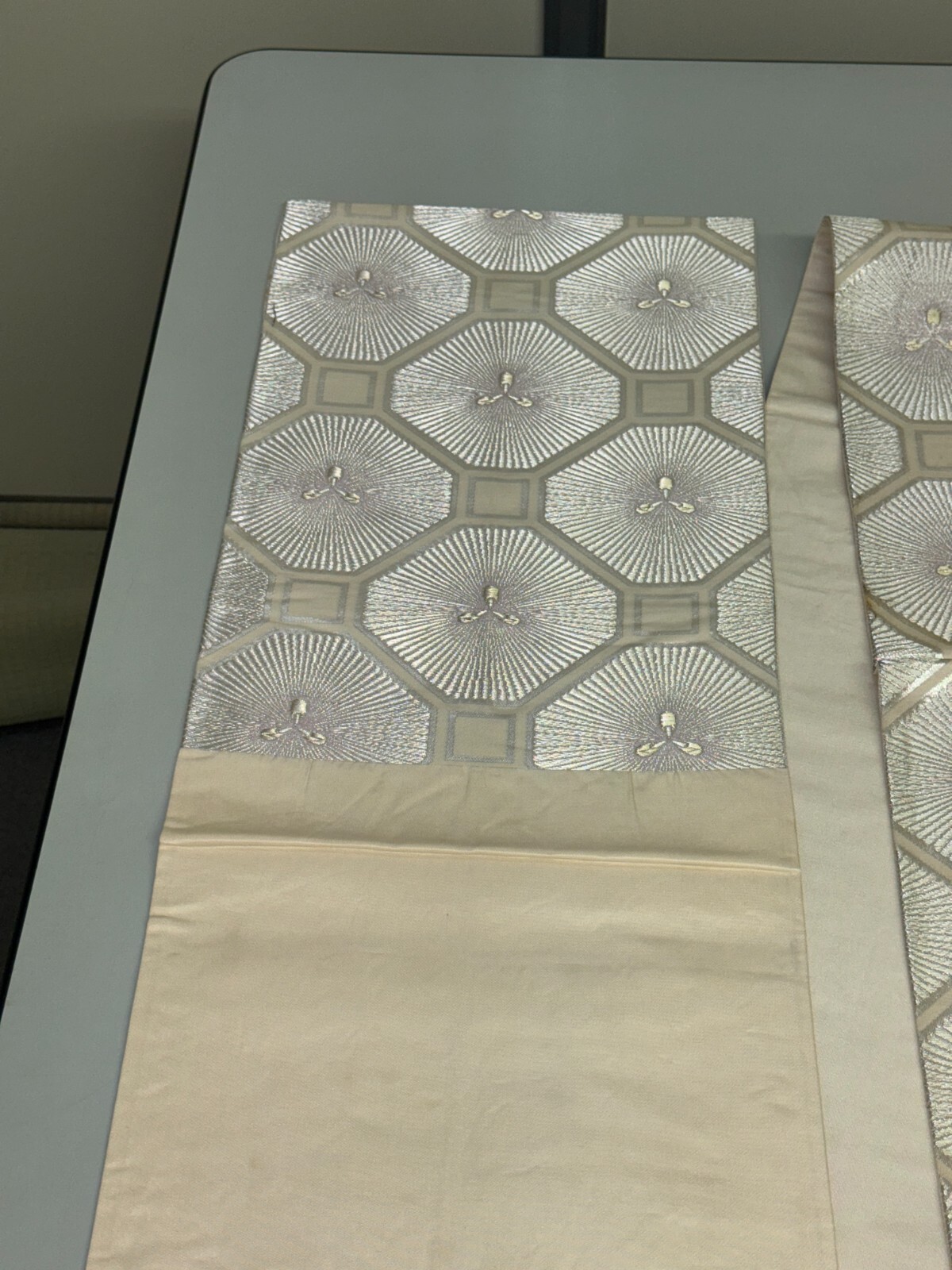 как выглядит Japanese Vintage Kimono Fukuro Obi silk silver expensive embroidery 164.5x11.8in фото