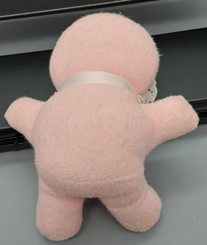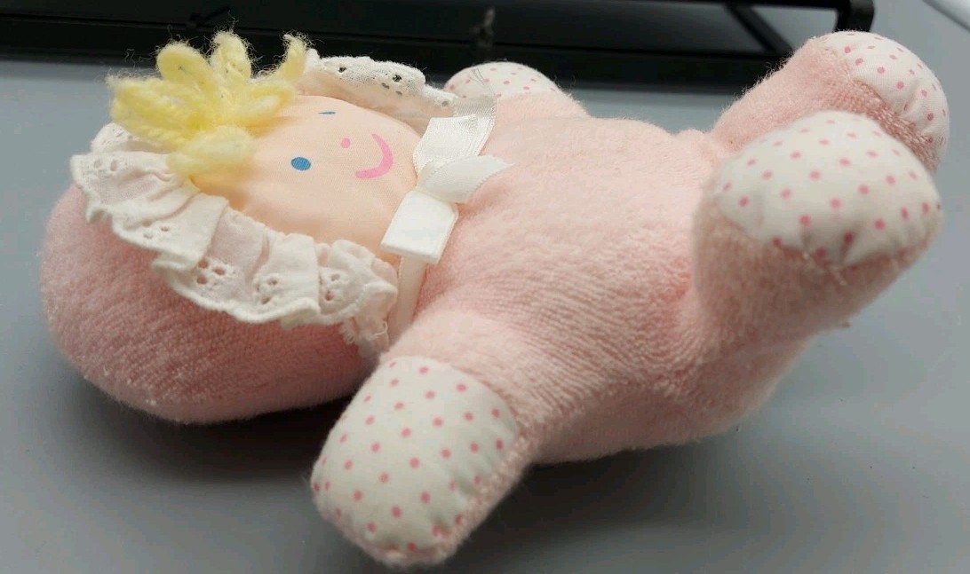 как выглядит Vintage Eden Pink Terrycloth Terry Cloth Rattle Doll Yarn Hair Polka Dot 7" фото