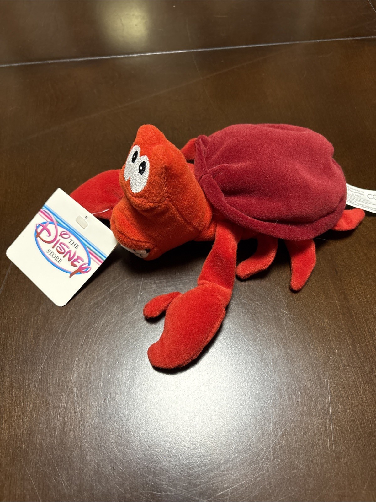 DISNEY STORE Sebastian Little MERMAID Bean Bag Plush CRAB 8 Vintage w / TAG