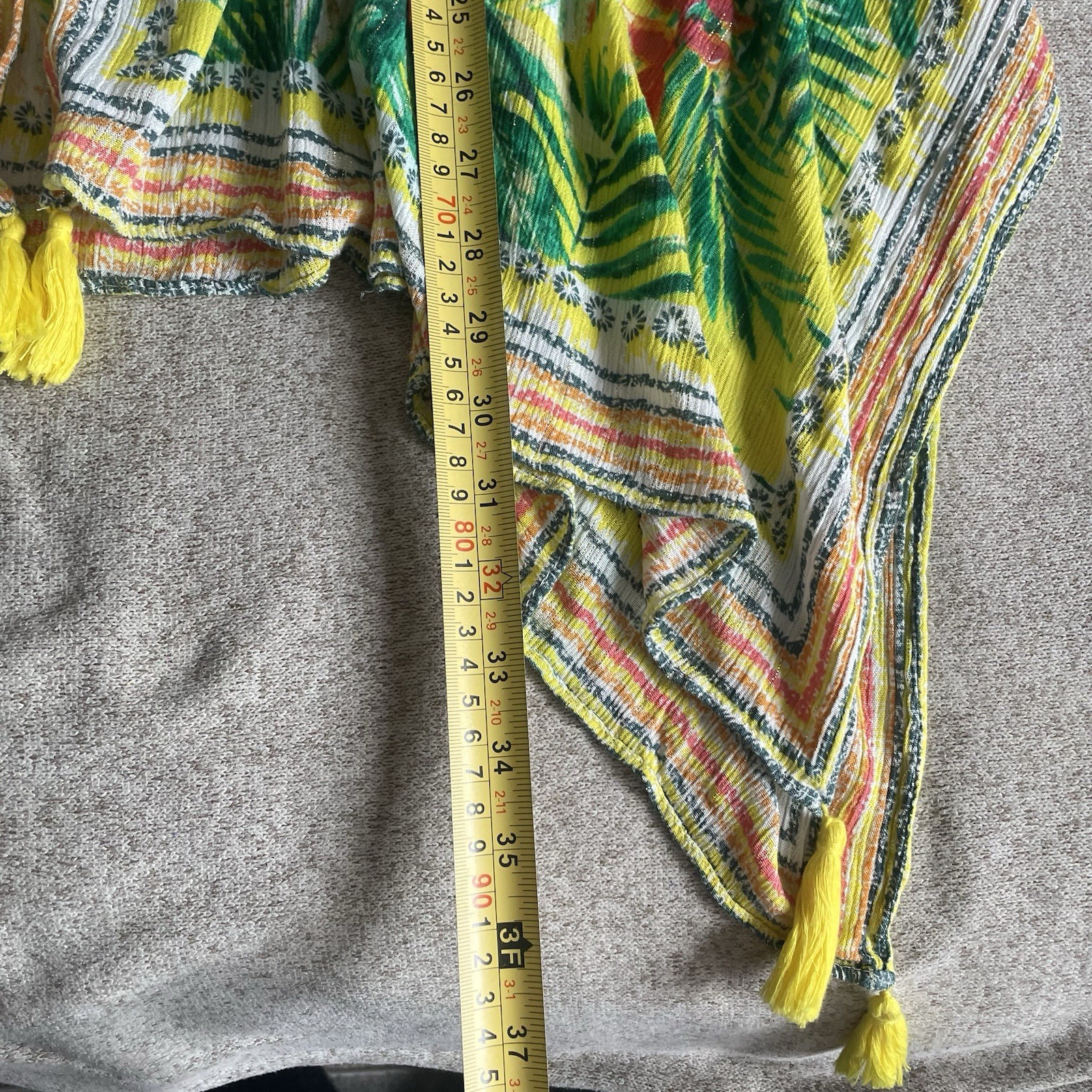как выглядит Yellow Colorful Boho Floral Tropical Poncho Tassels Cover-up One Size Kimono фото