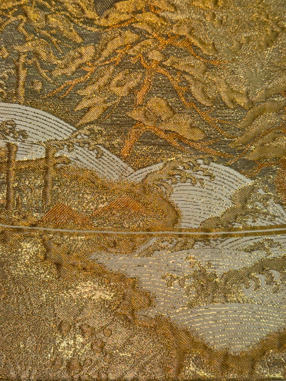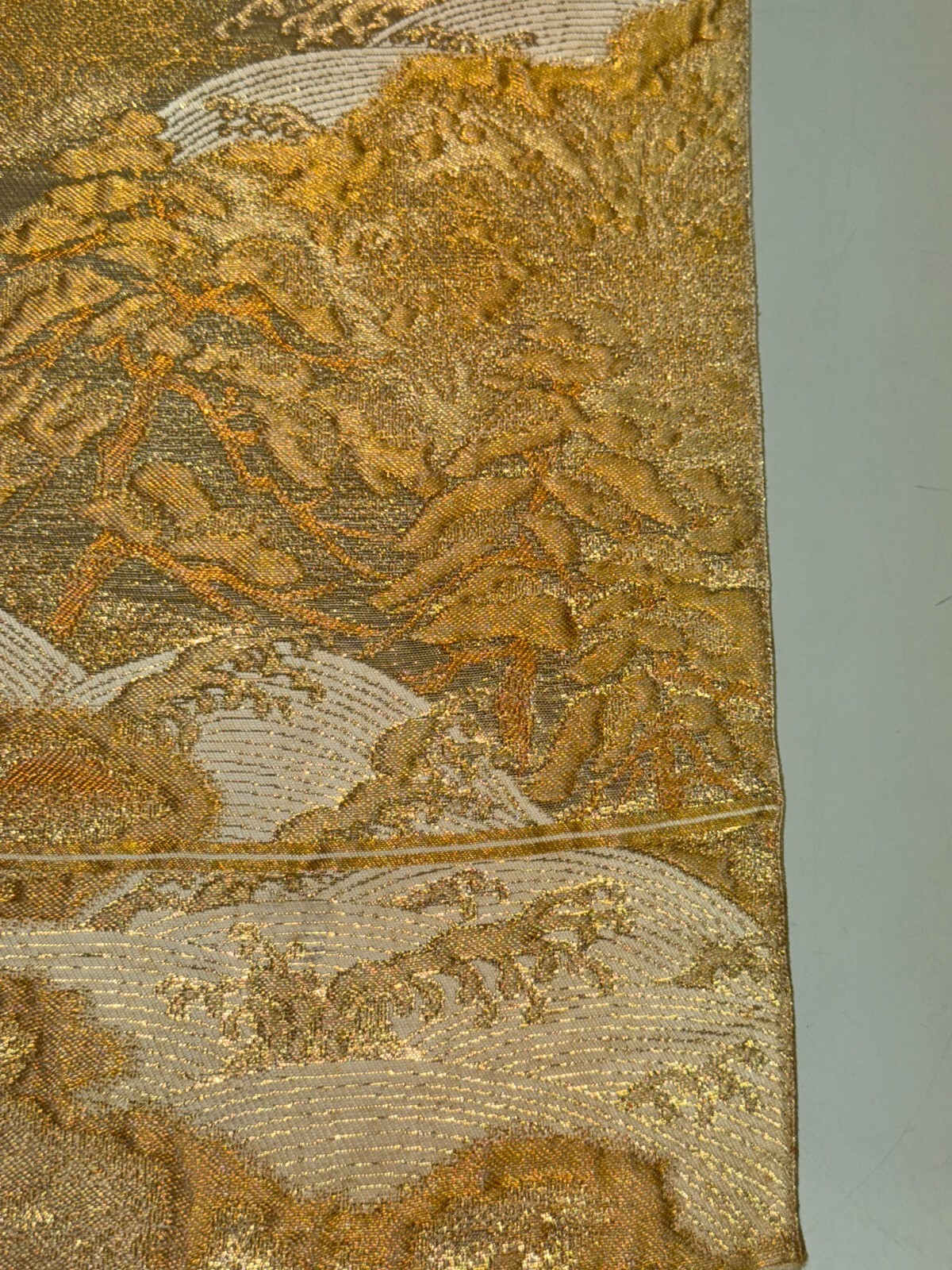 Japanese Vintage Kimono Fukuro Obi silk gold expensive embroidery dirt 159x11in