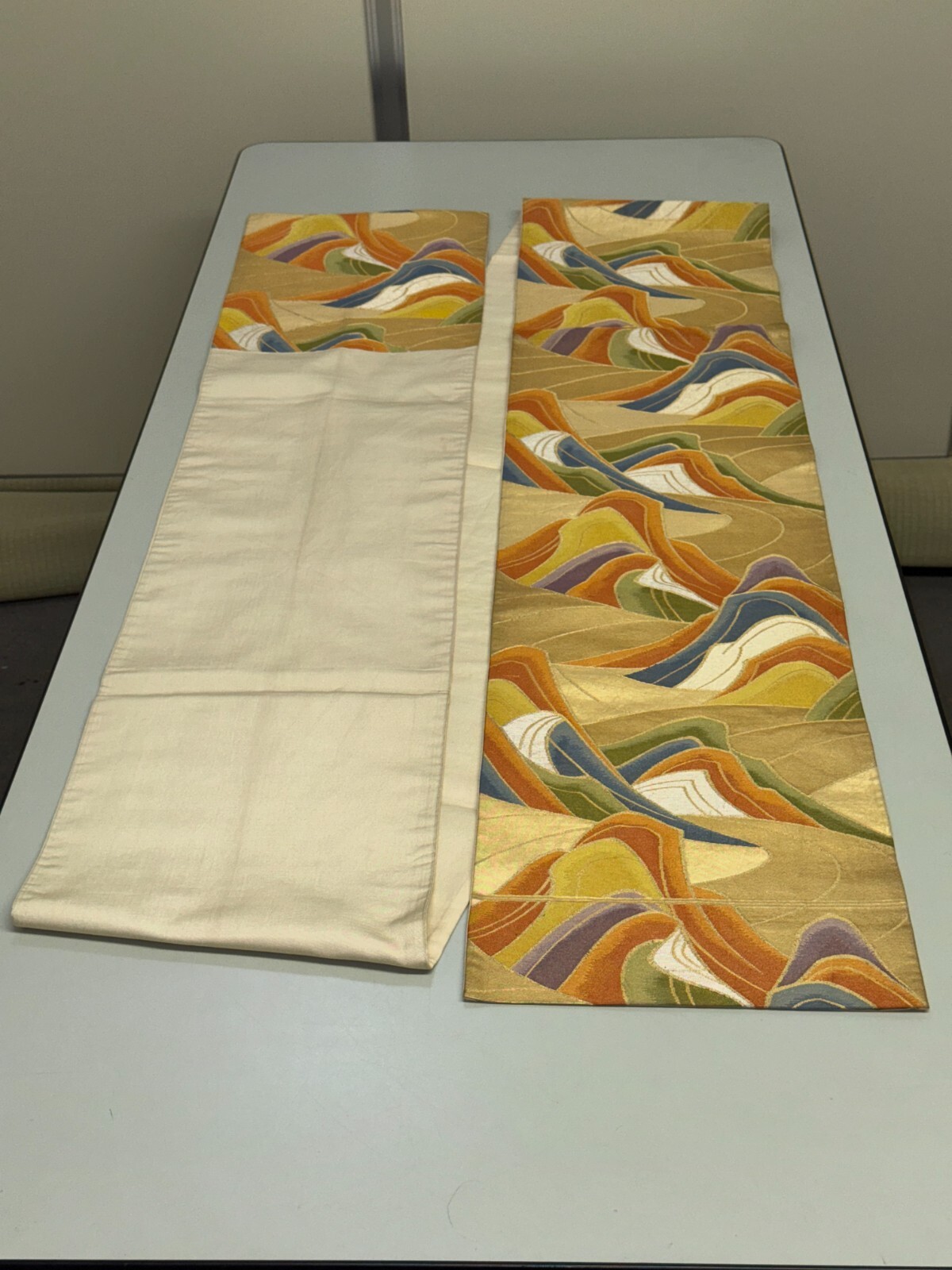 как выглядит Japanese Vintage Kimono Fukuro Obi silk brown expensive tradition 156.6x11.8in фото