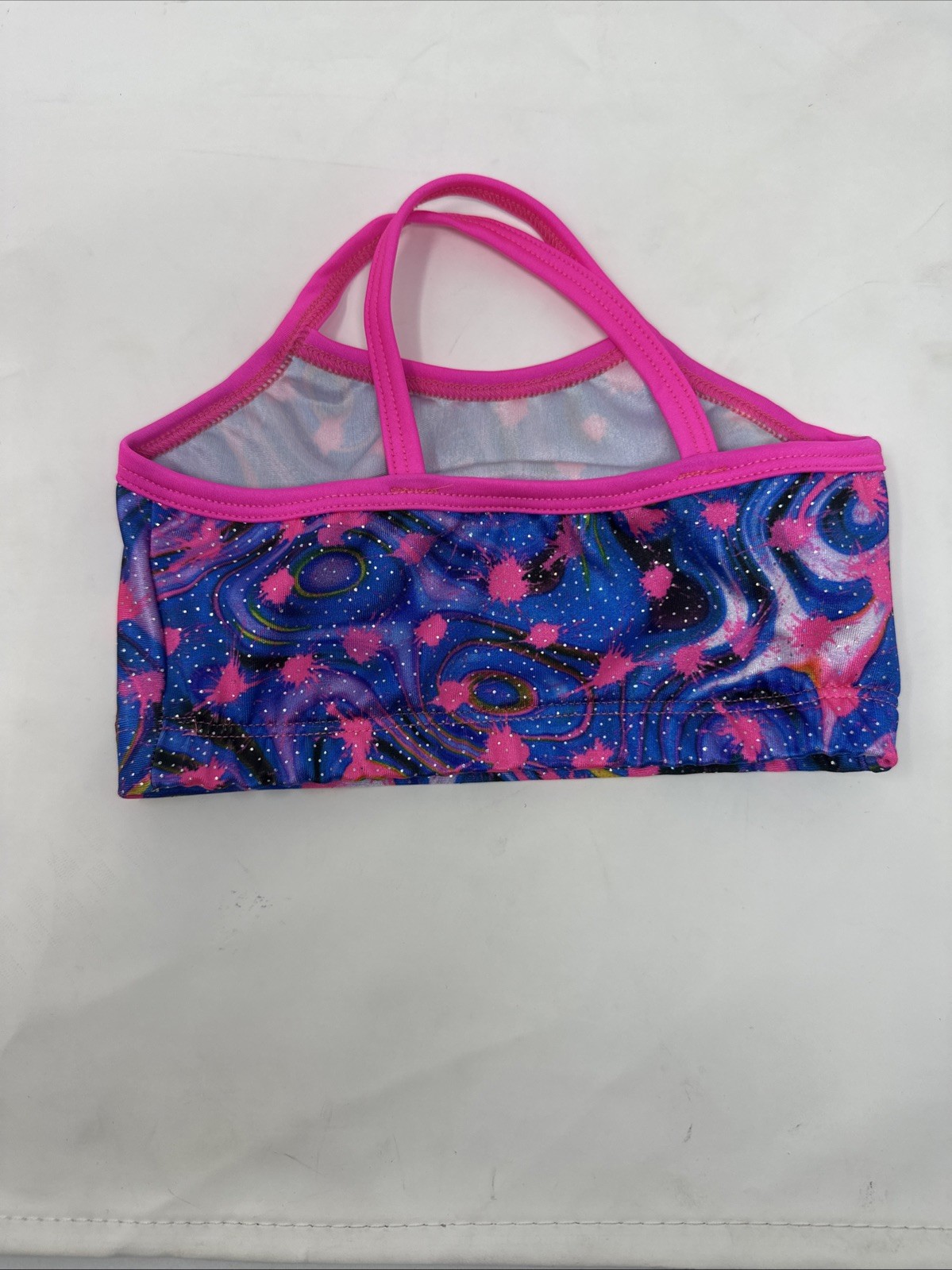 NWT Reflectionz Spaghetti Strap Crop Top And Shorts Hot Pink Burst Size 2 Dance
