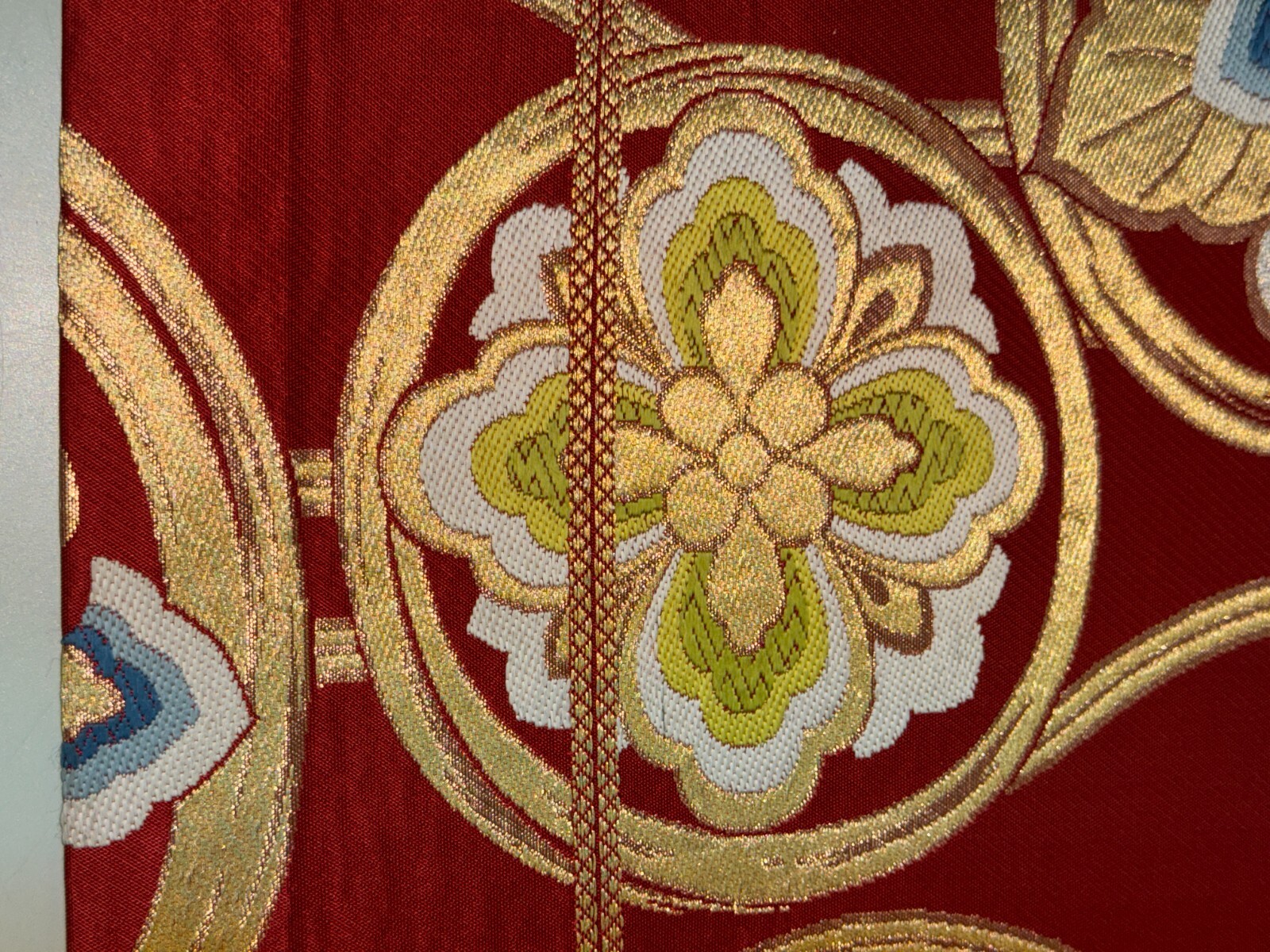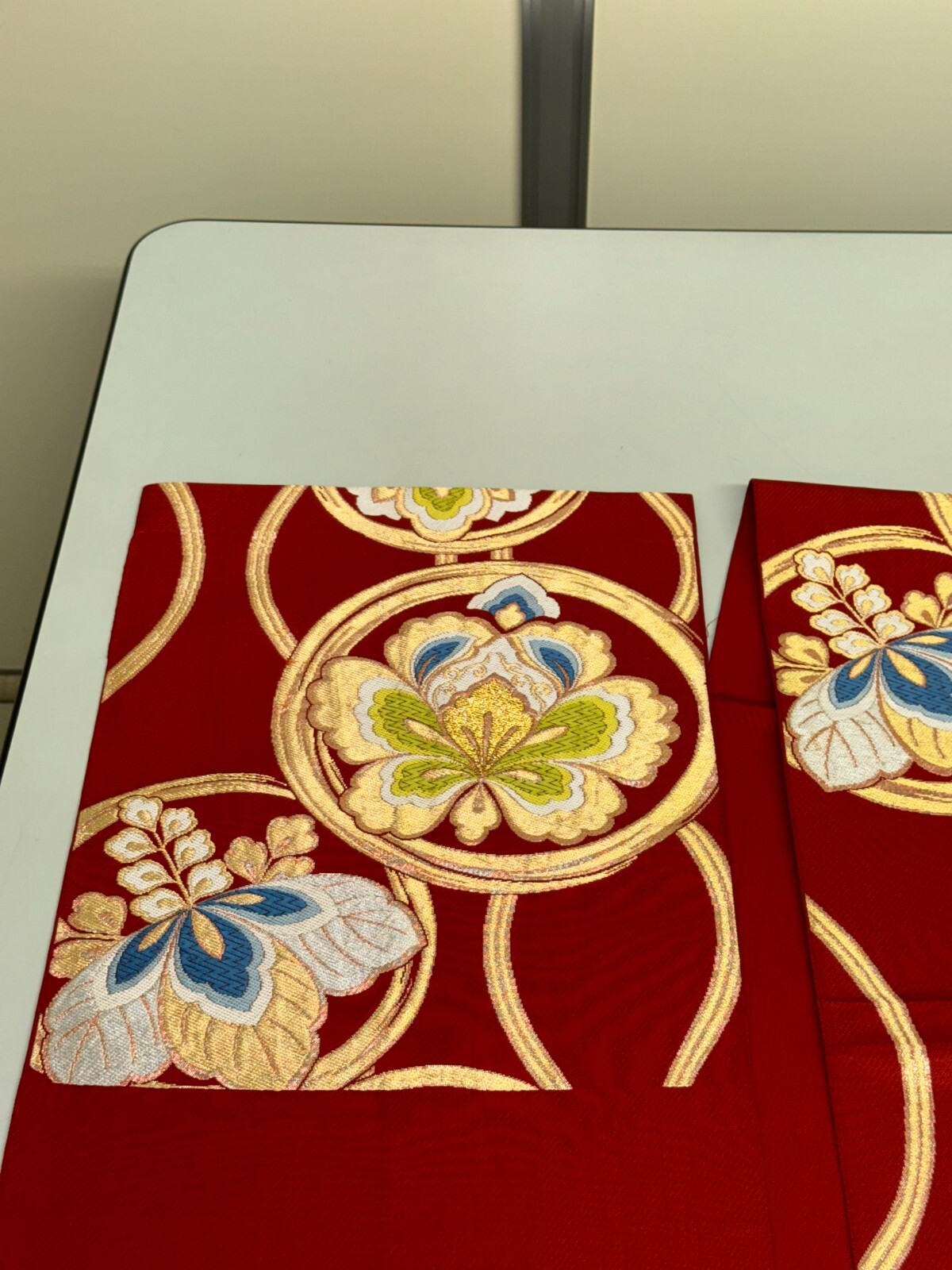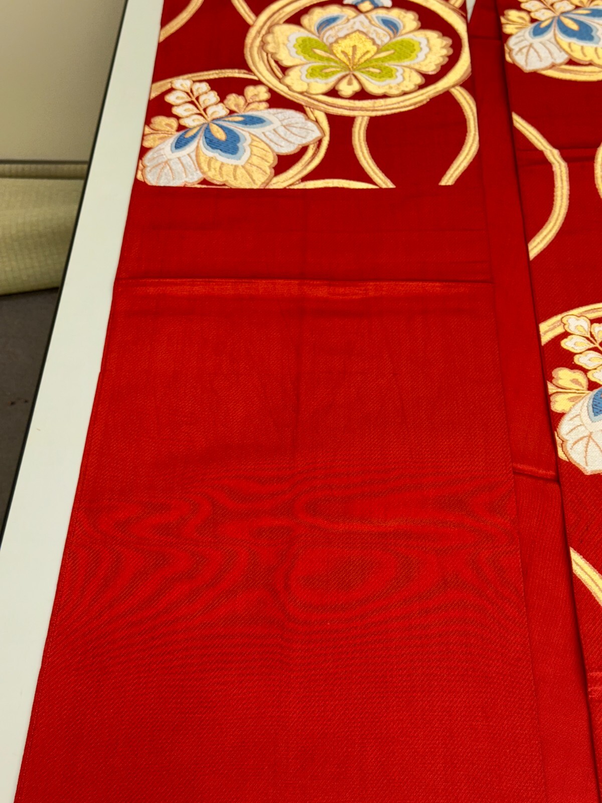 как выглядит Japanese Vintage Kimono Fukuro Obi silk red expensive embroidery 158.2x12.2in фото