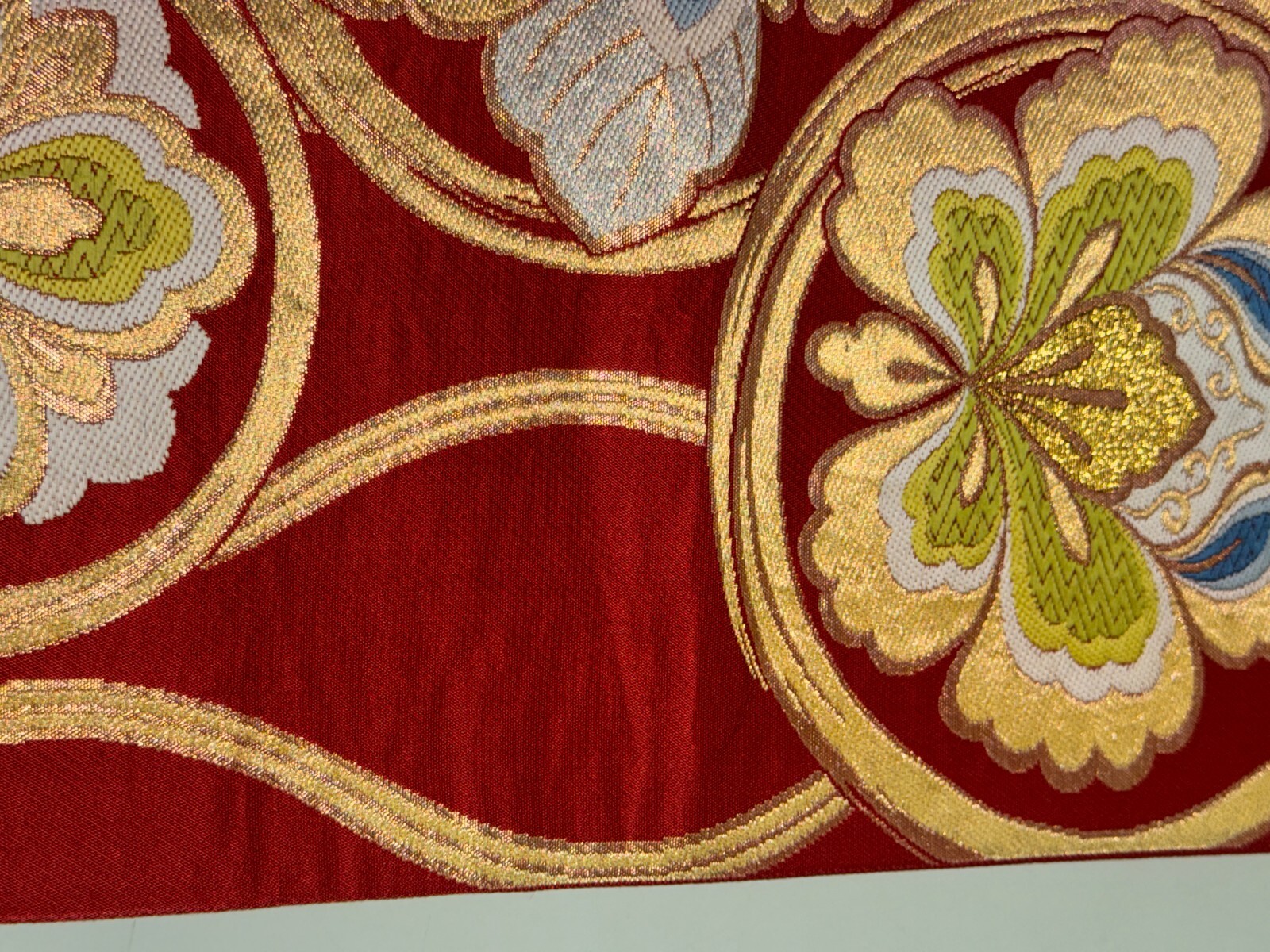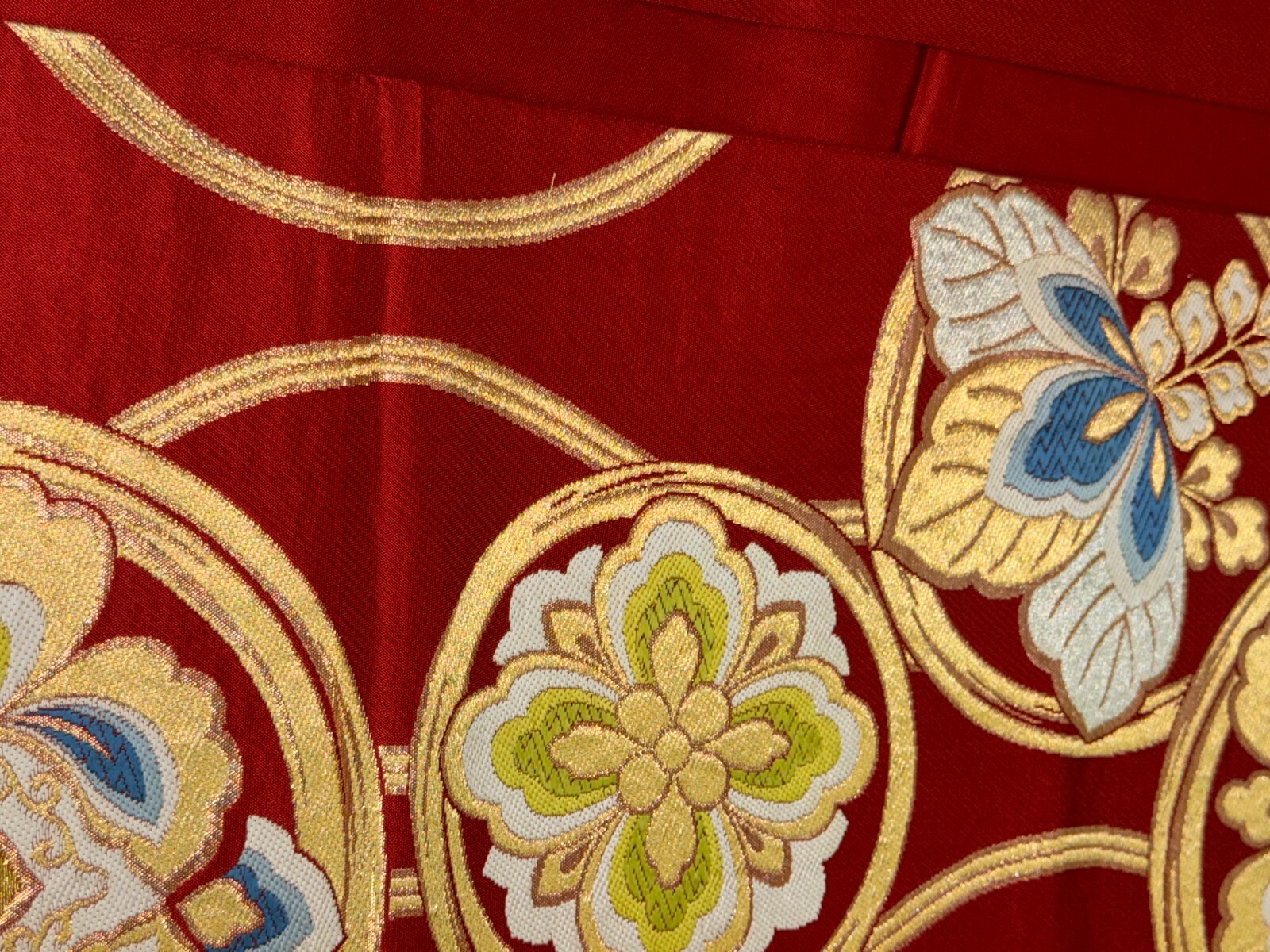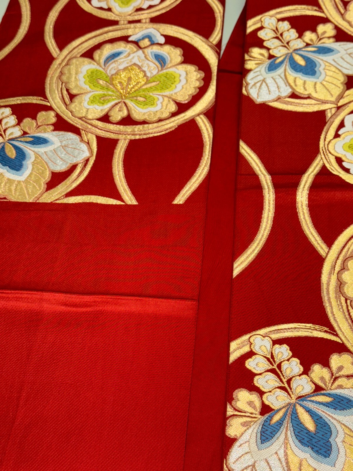 Japanese Vintage Kimono Fukuro Obi silk red expensive embroidery 158.2x12.2in