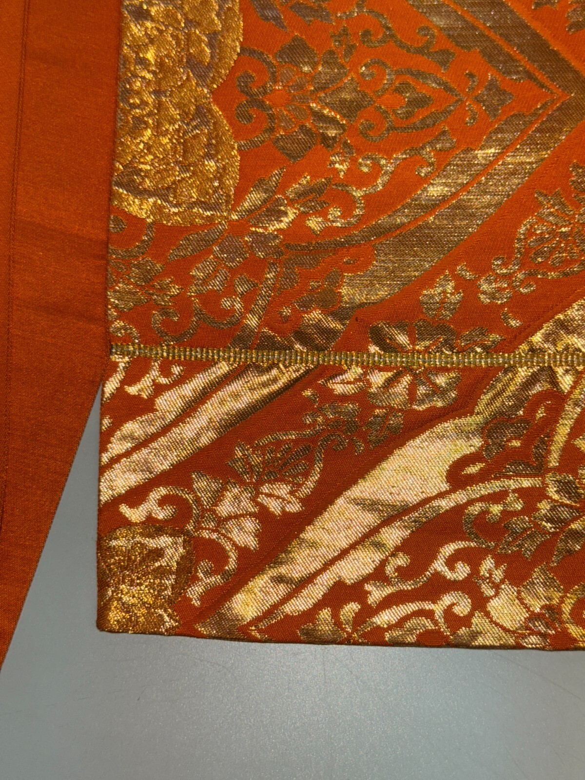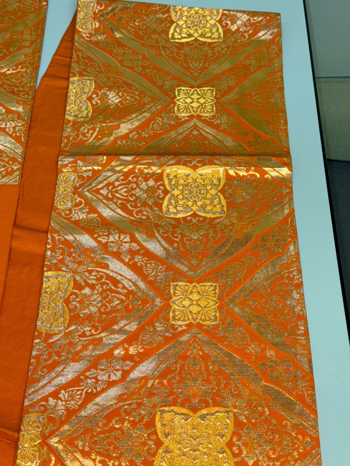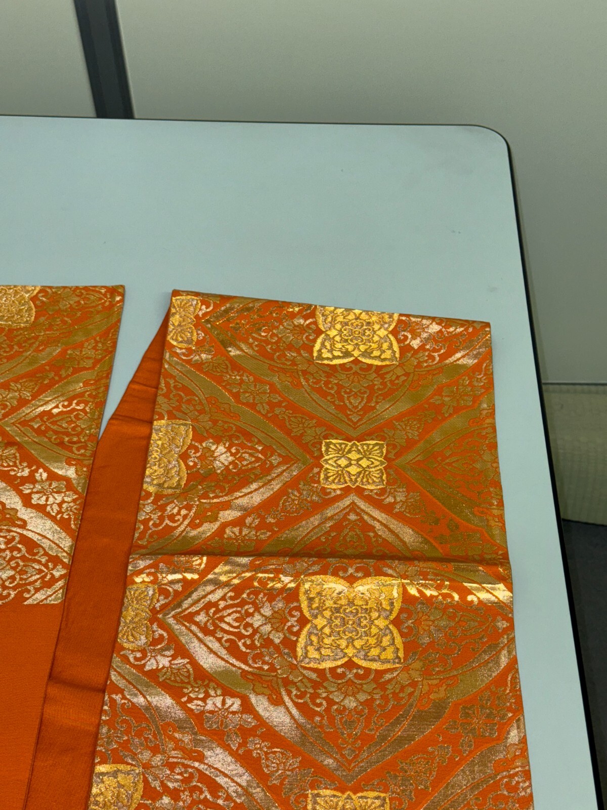как выглядит Japanese Vintage Kimono Fukuro Obi silk orange expensive embroidery 155.9x12.2in фото