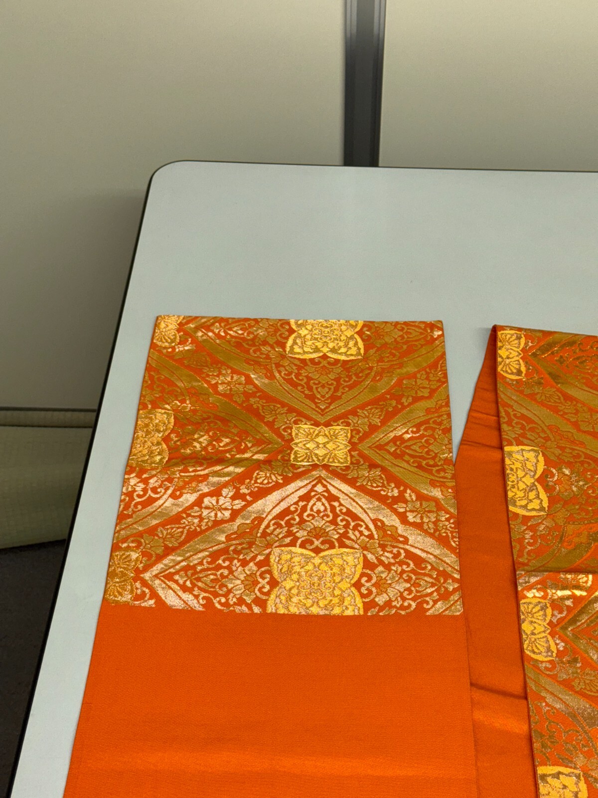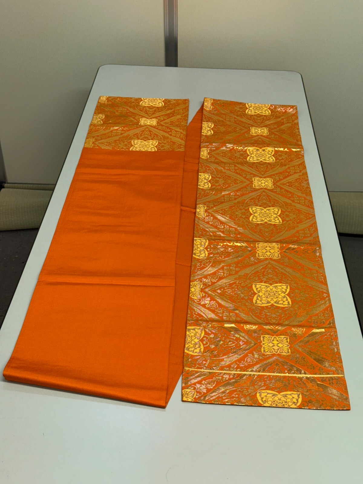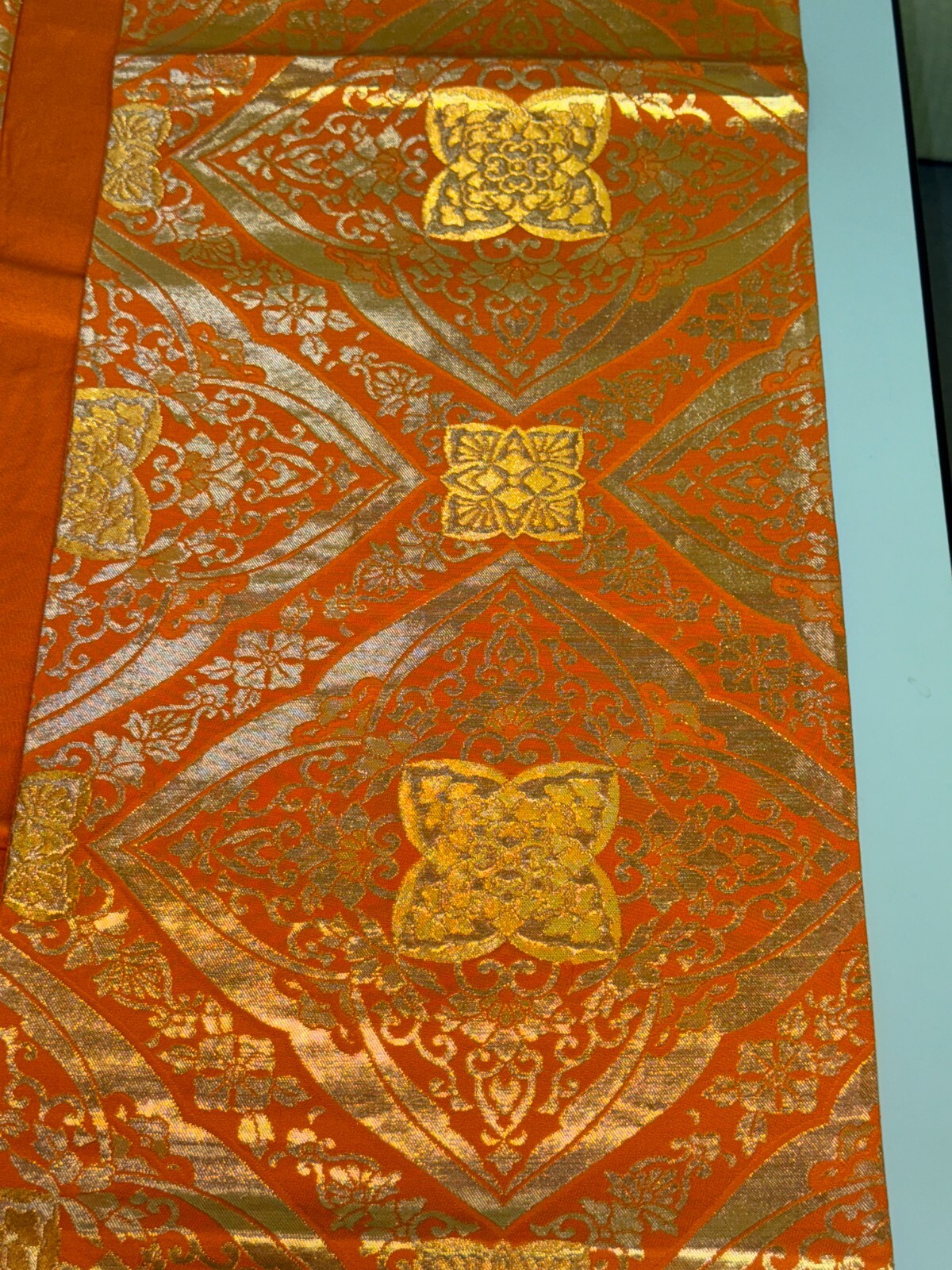 как выглядит Japanese Vintage Kimono Fukuro Obi silk orange expensive embroidery 155.9x12.2in фото