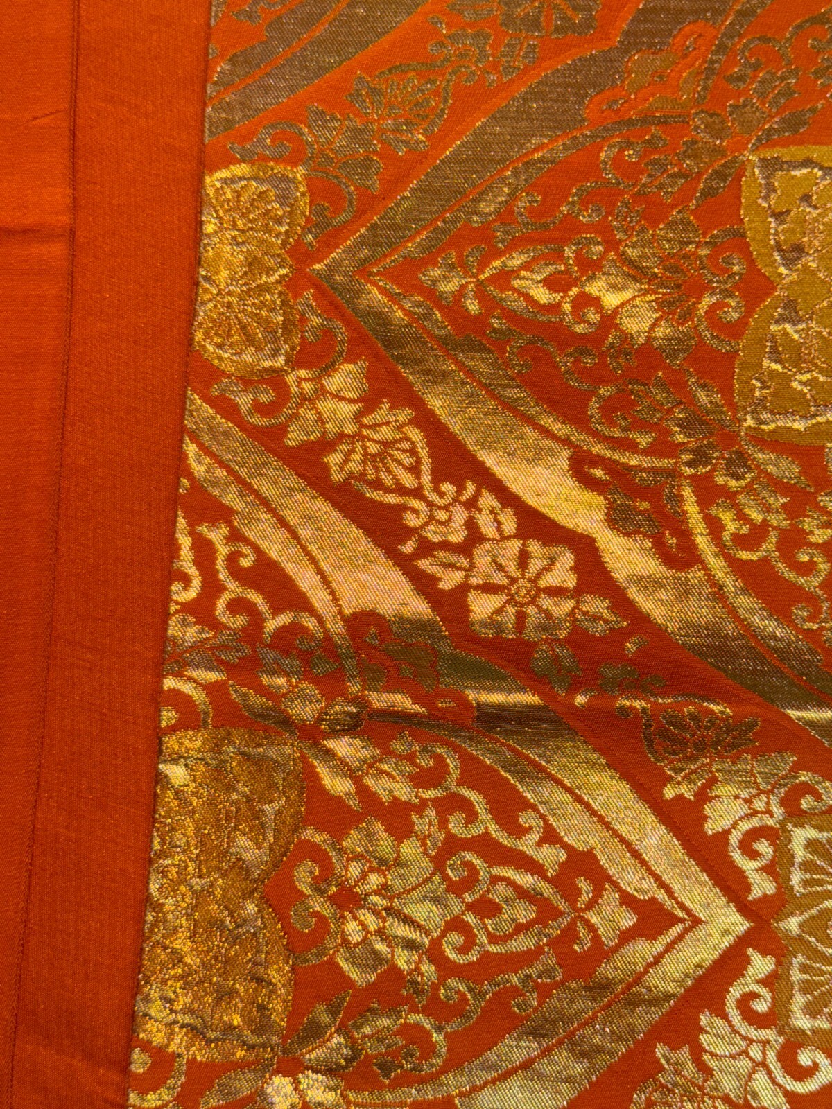 Japanese Vintage Kimono Fukuro Obi silk orange expensive embroidery 155.9x12.2in