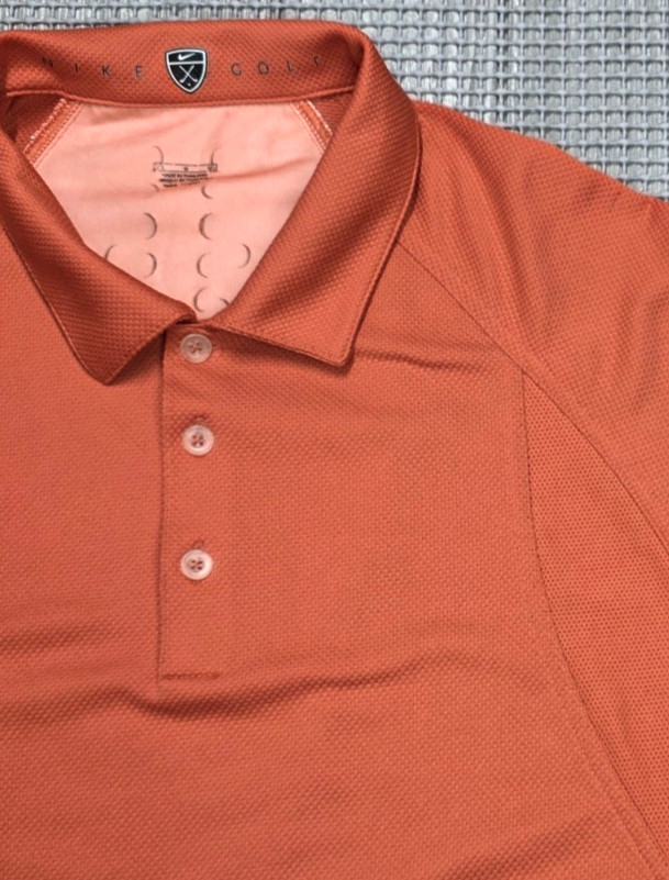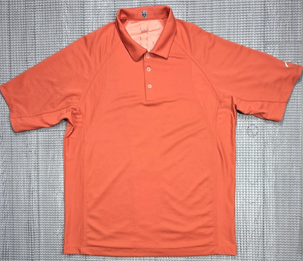 как выглядит Nike Golf Polo Orange Dri Fit Mens L Perforated Performance Short Sleeve фото