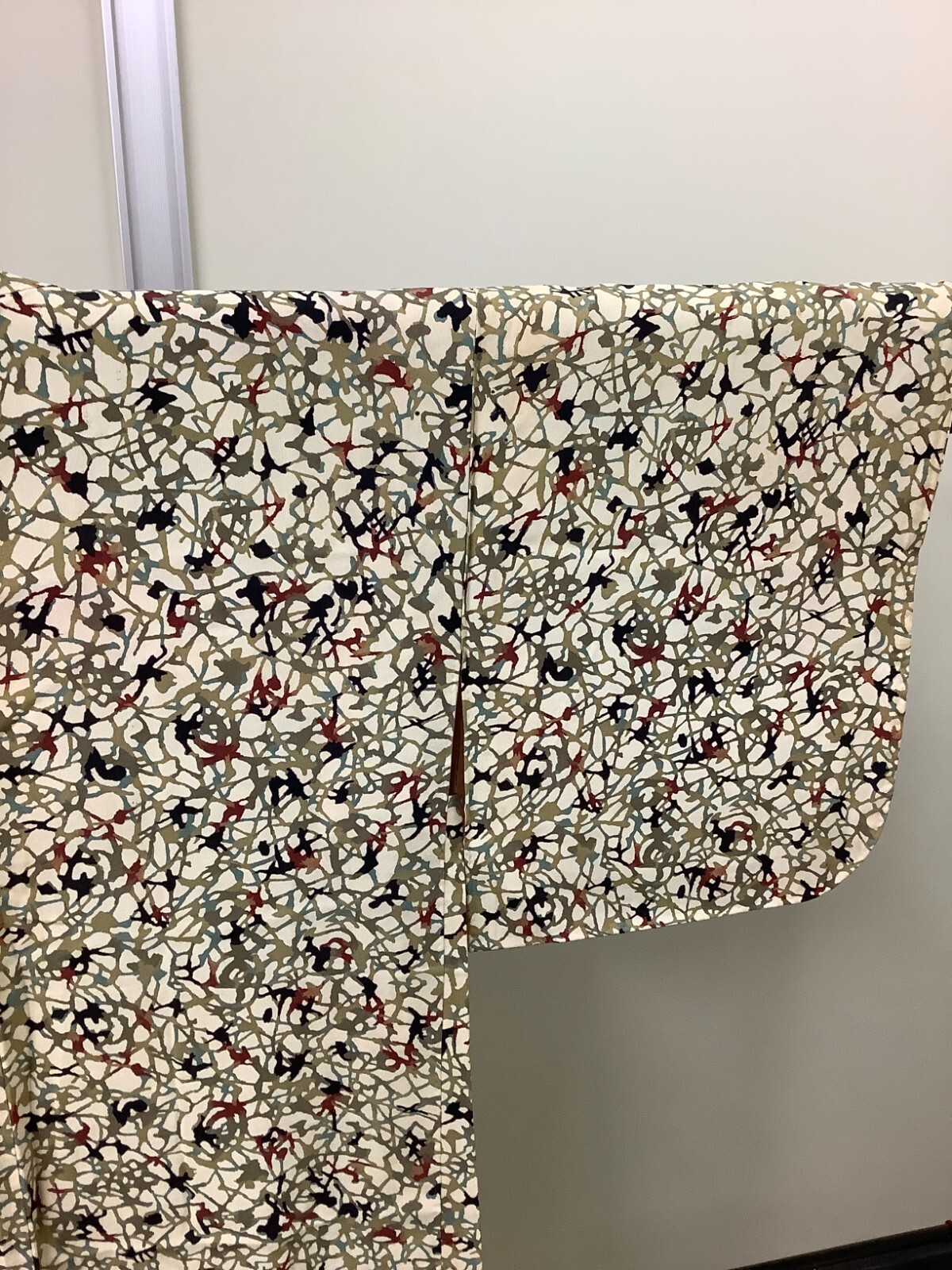как выглядит Japanese Vintage Kimono Haori Jacket pure silk cream tradition Height 33.85inch фото