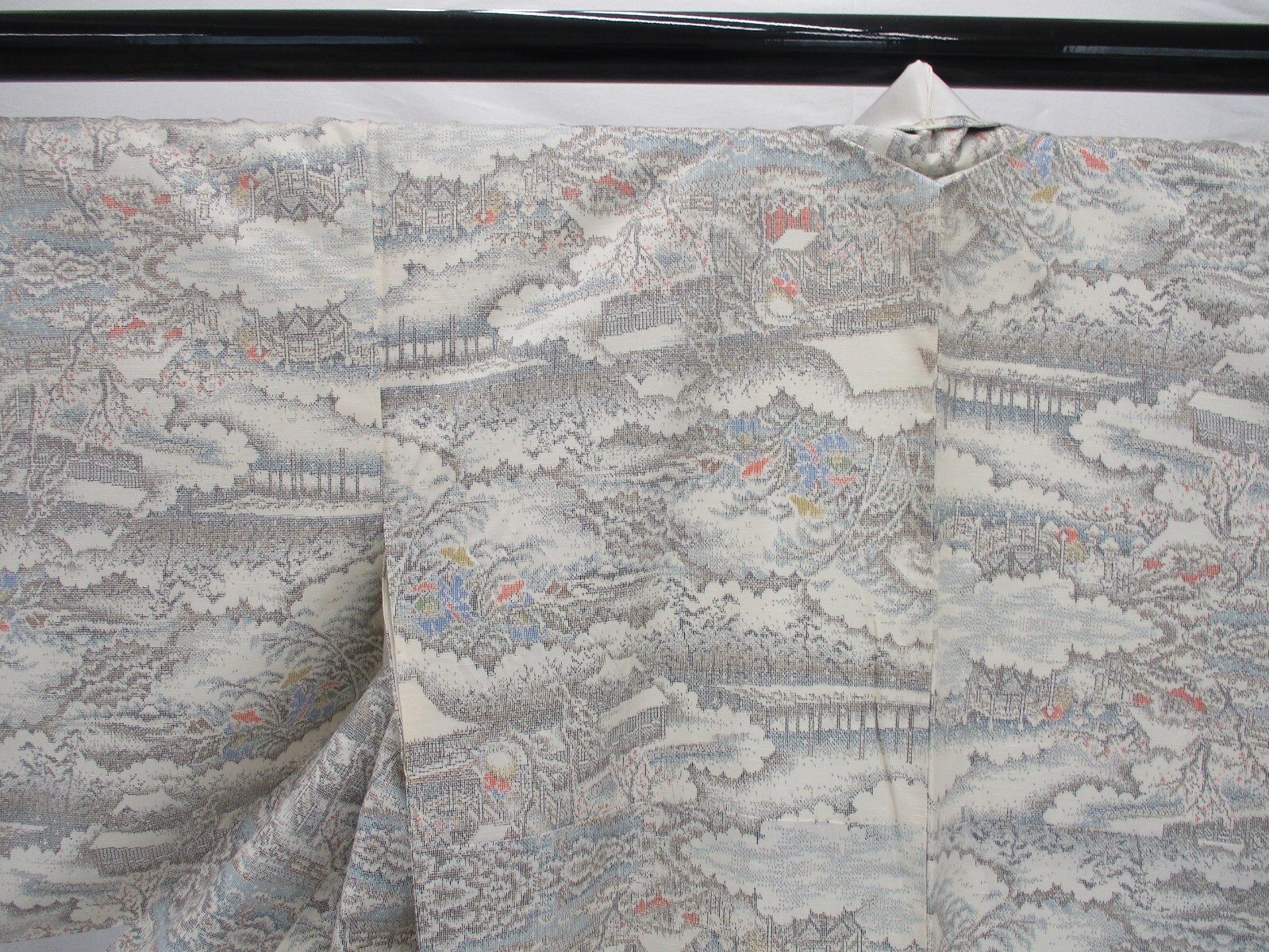 Japanese Vintage Kimono silk white tsumugi expensive tradition Height 63.38in