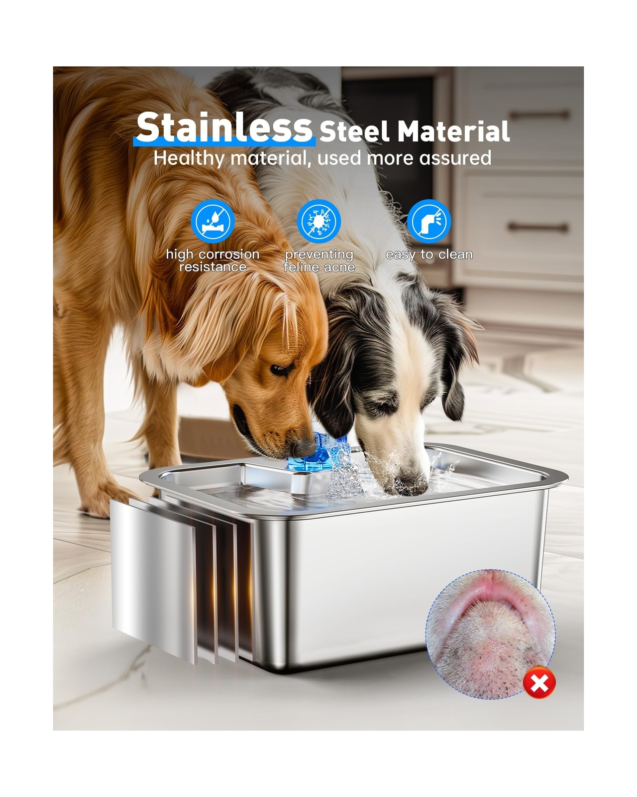 Stainless Steel Dog Water Fountain, 3 Gallon Extra Large Pet Drinking Fountai...