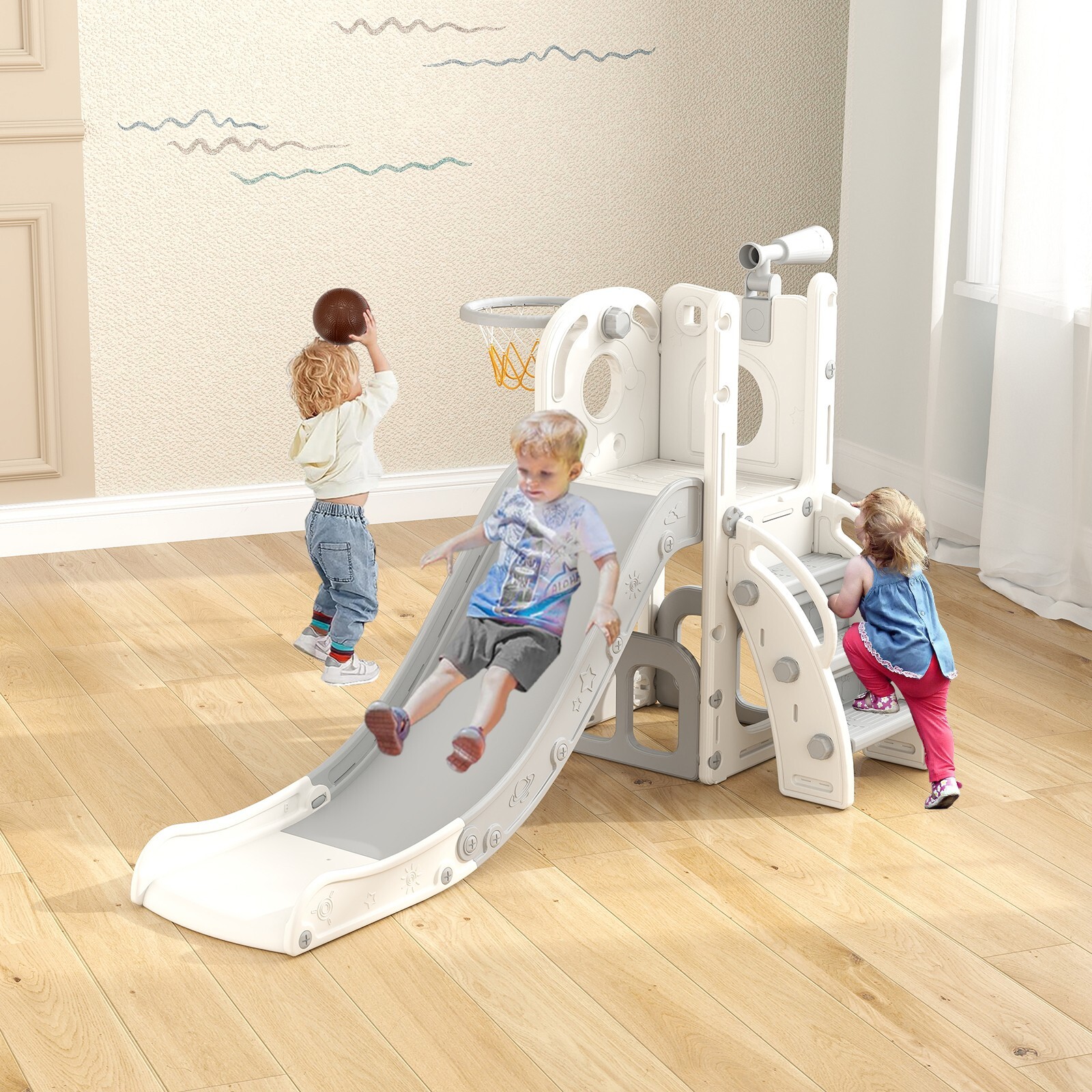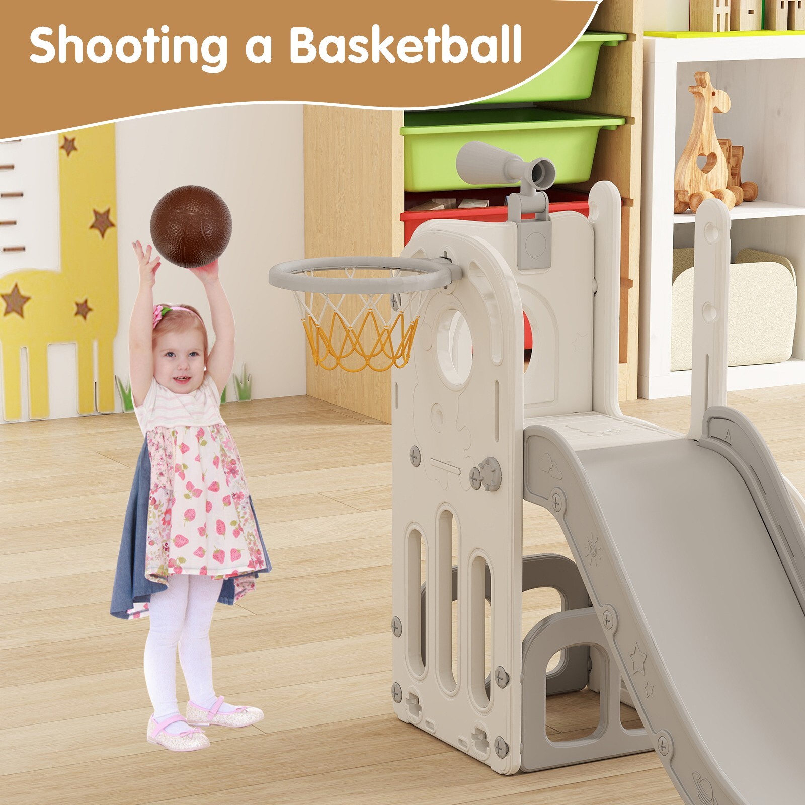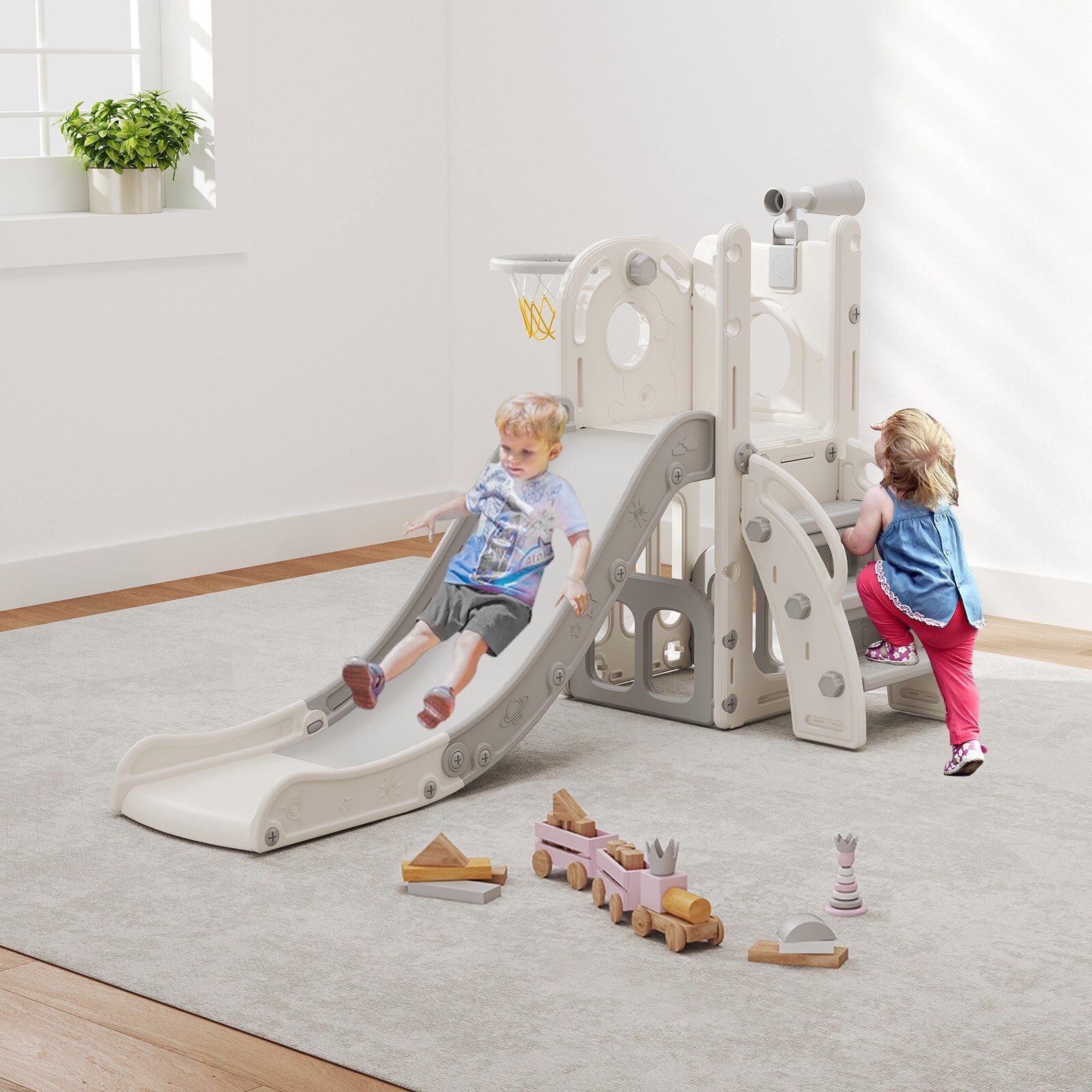 6 in 1 Toddler Playset Slide for Toddlers Age 1-3, Toddler Playground Kids Slide