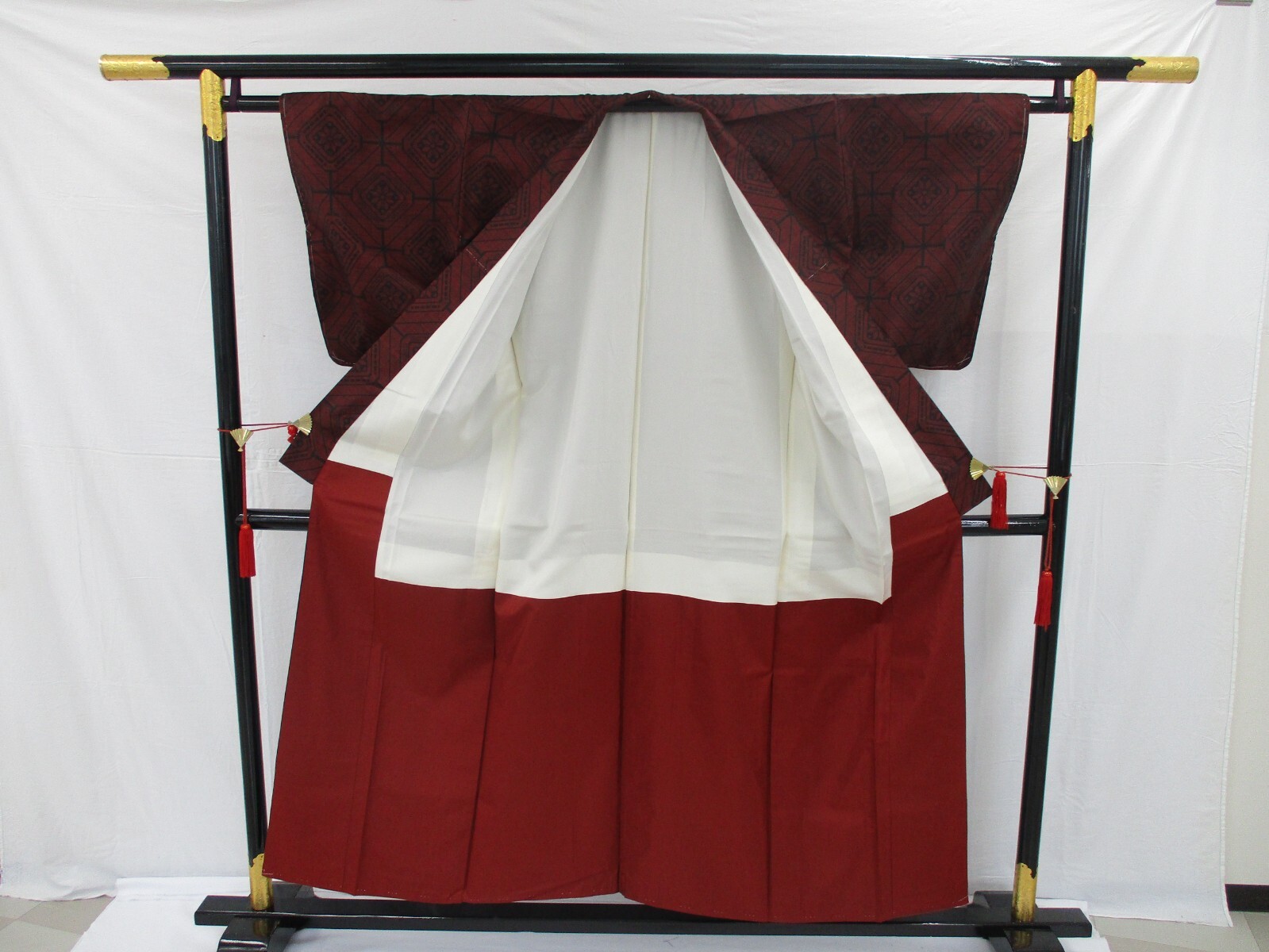 как выглядит Japanese Vintage Kimono silk red Oshima tsumugi expensive tradition Height 60in фото