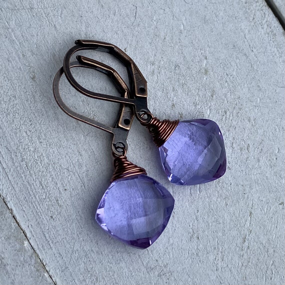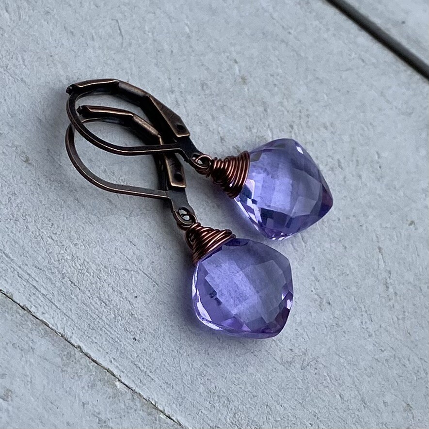Min Favorit Purple Hydro Quartz Copper Artisan Wire Wrapped Earrings