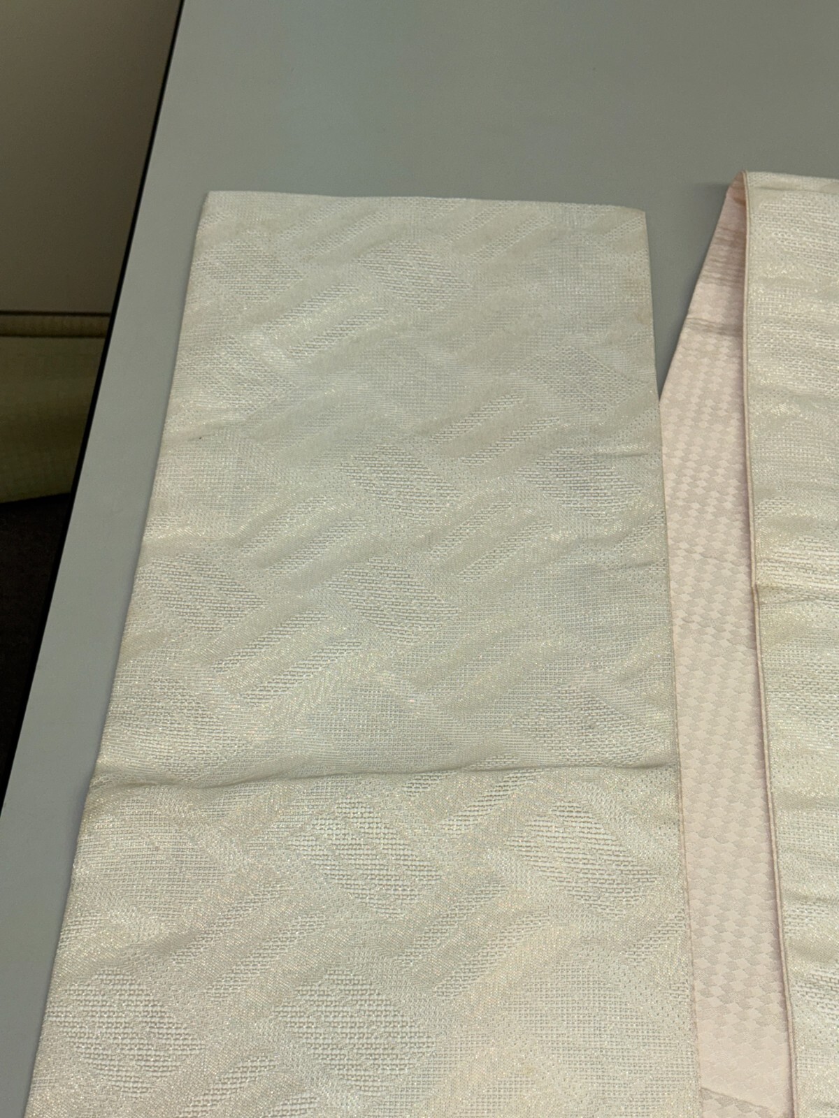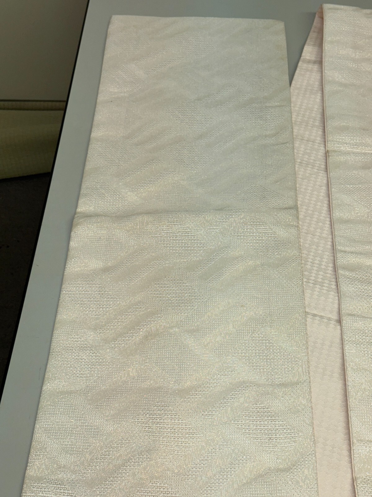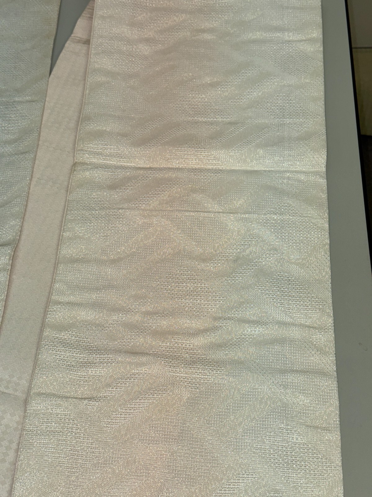 как выглядит Japanese Vintage Kimono Fukuro Obi polyester white expensive tradition 151x11in фото
