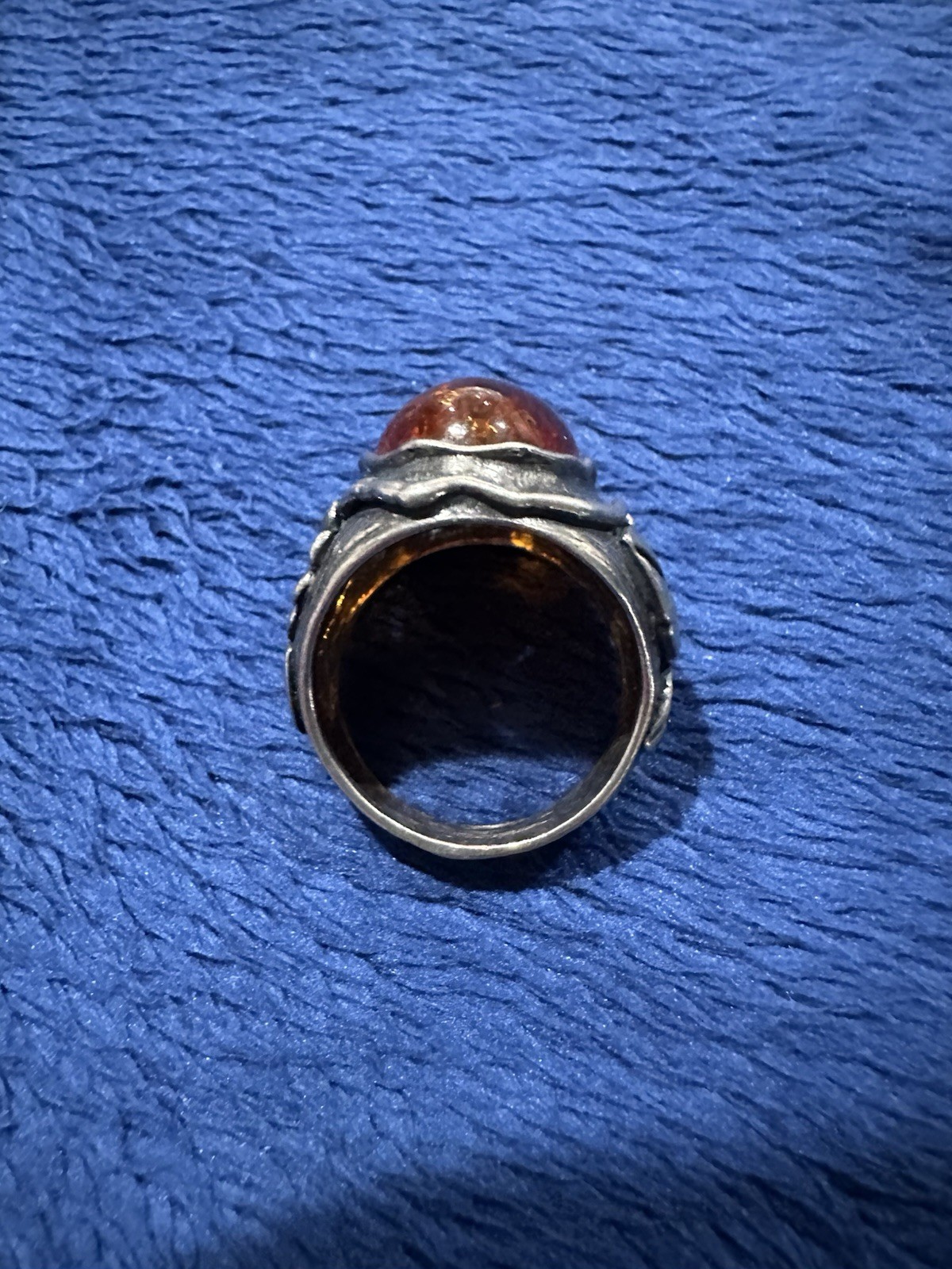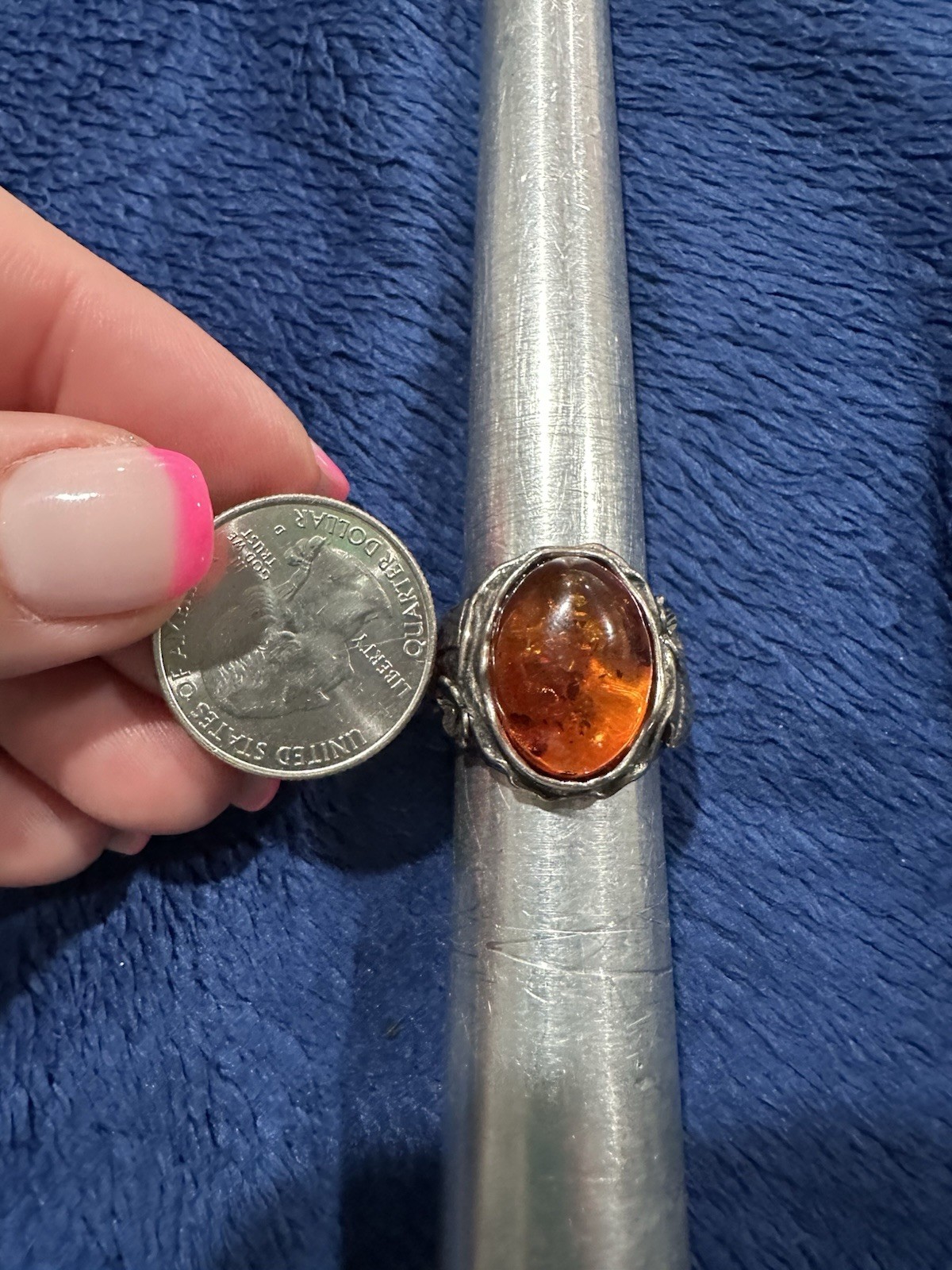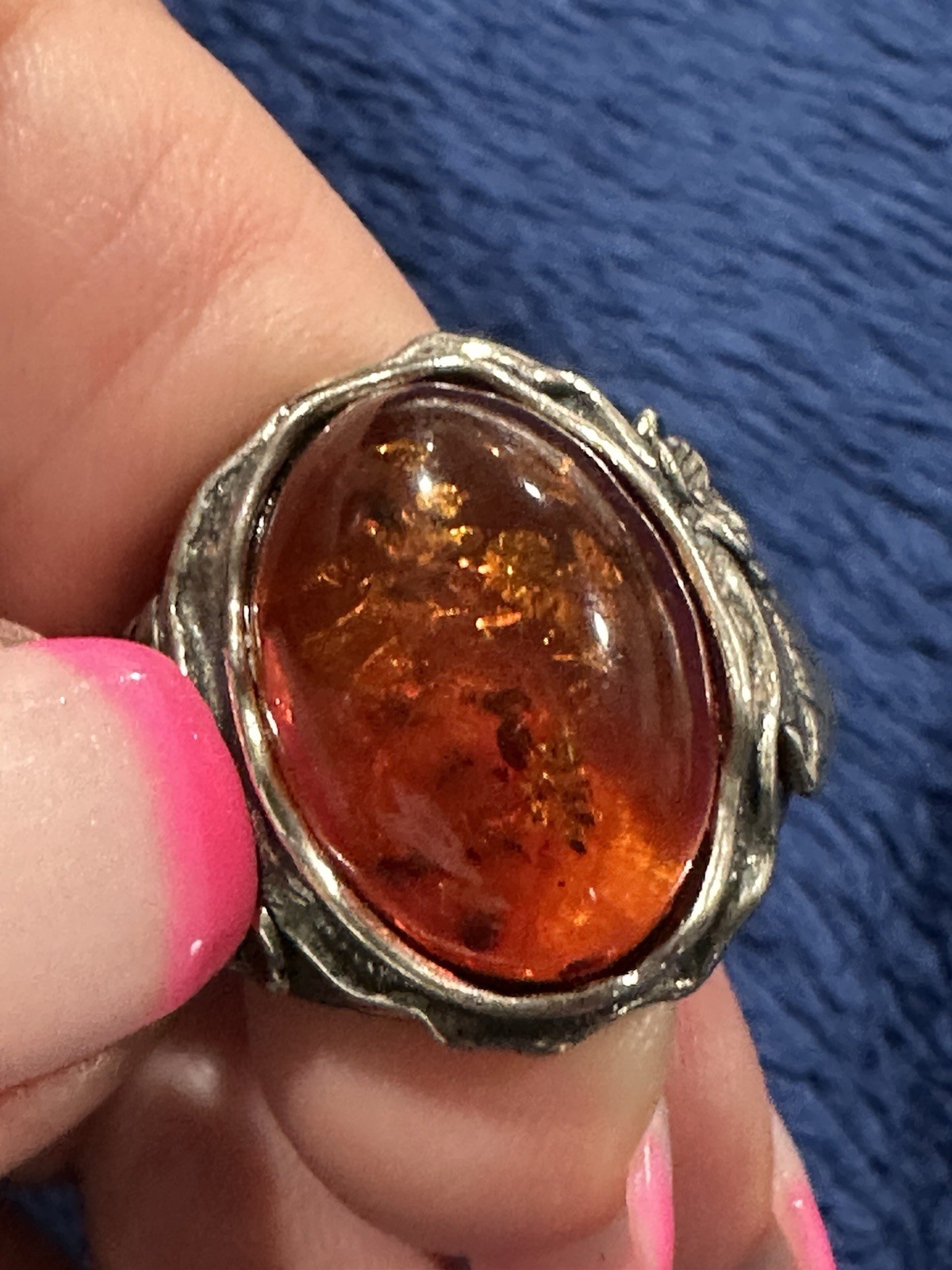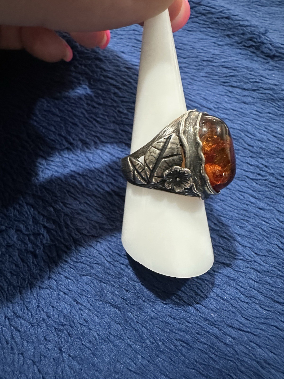как выглядит Vtg Or Paz PZ Signed Israel Sterling Silver Floral Amber Ring Sz 8.25 фото