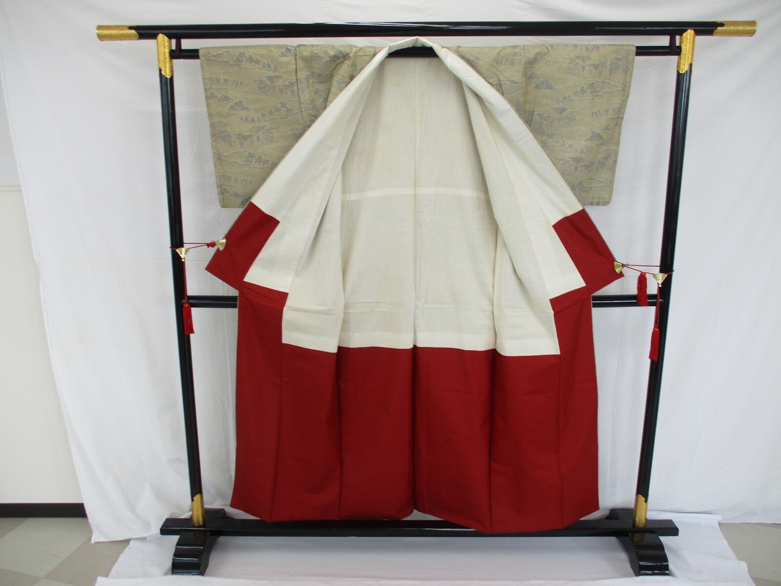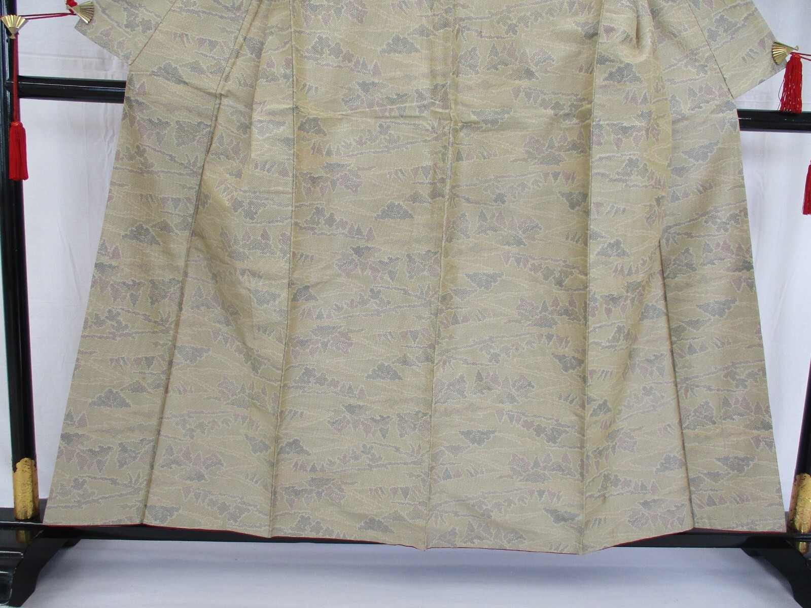 Japanese Vintage Kimono silk beige tsumugi expensive tradition Height 60.23in
