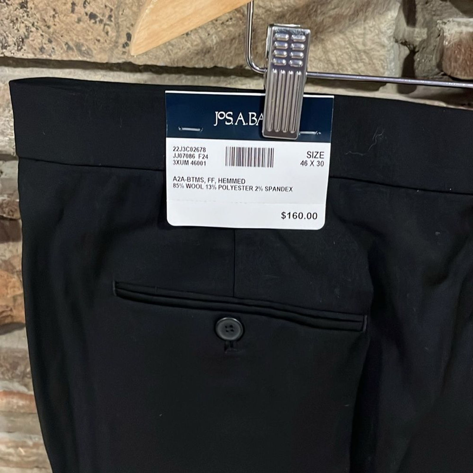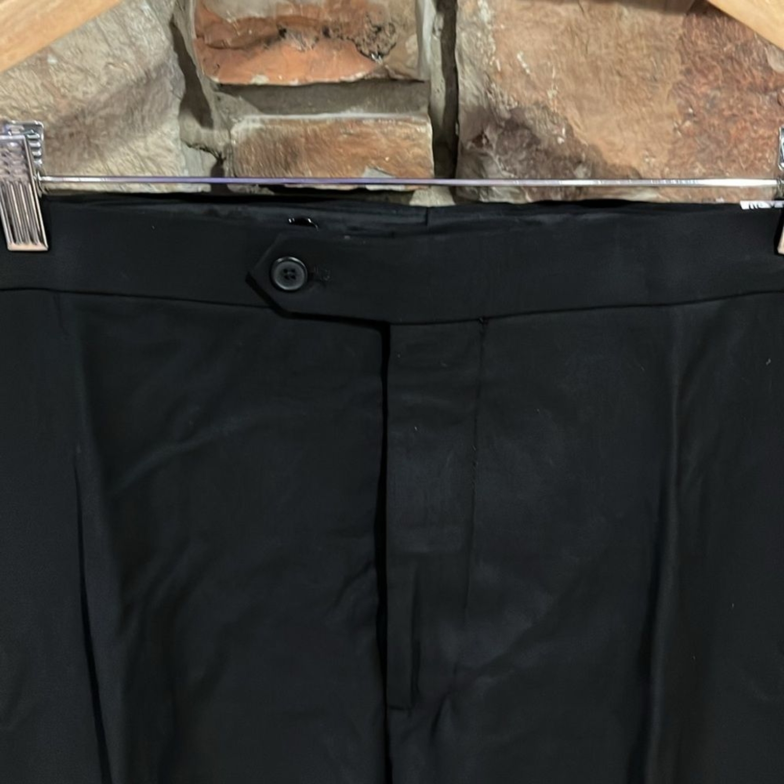 как выглядит Jos. A. Bank Black Wool Blend Tuxedo Stripe Flat Front Dress Pants фото