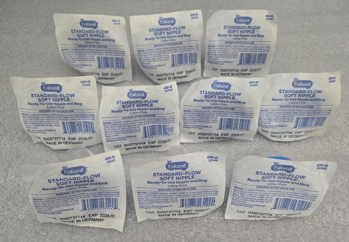 10-Nipples Enfamil Standard-Flow Soft Nipple Latex Blue Ring 01/2028