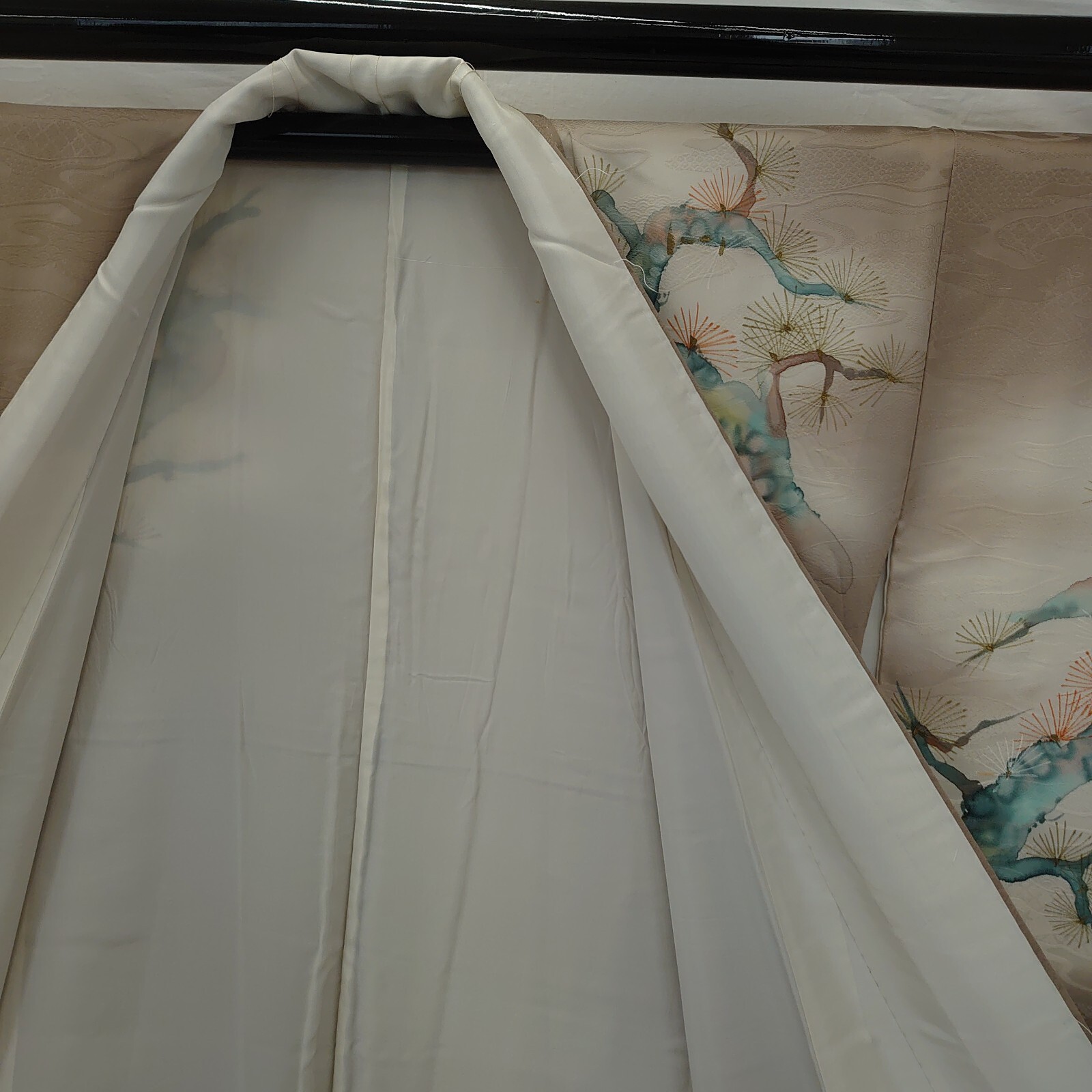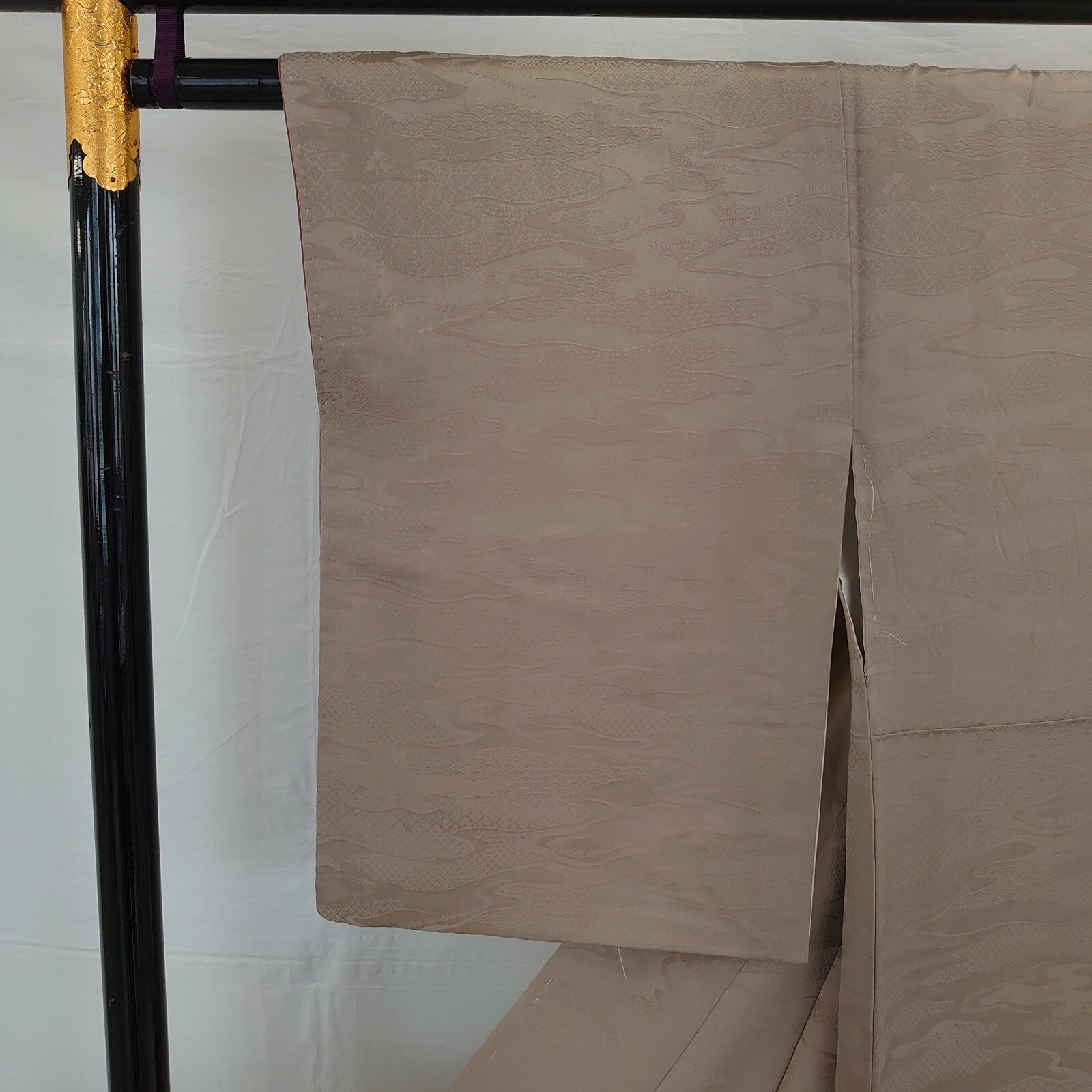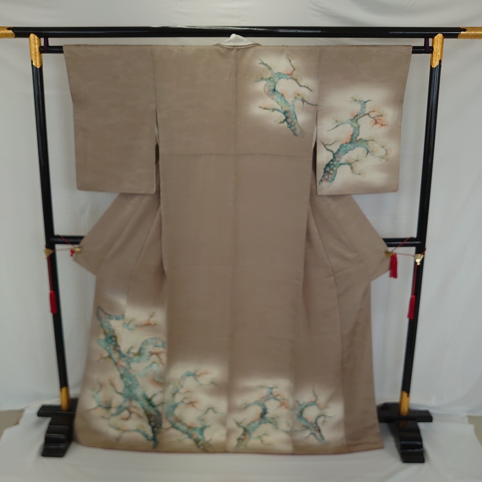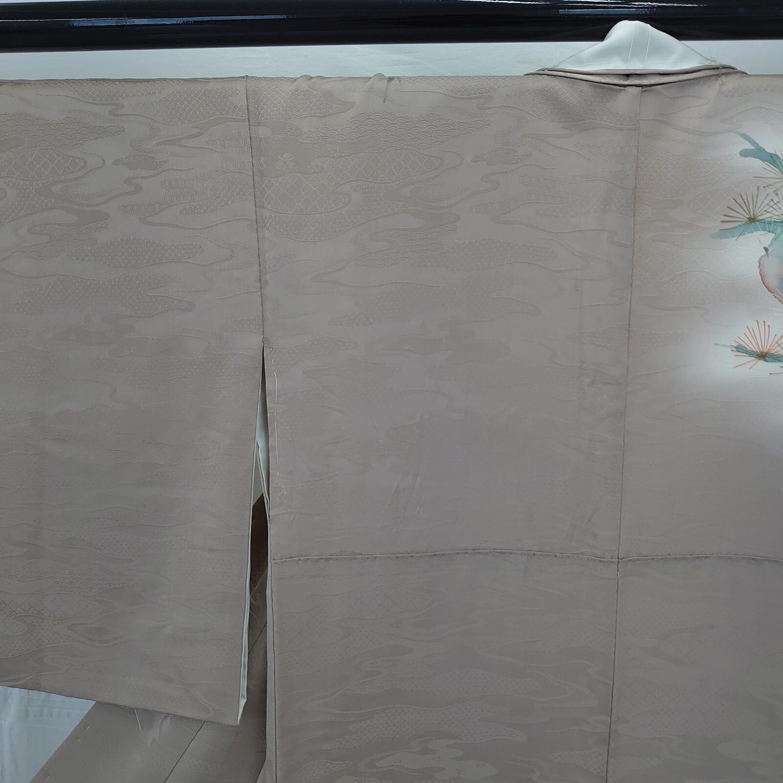 Japanese Vintage Kimono silk gray expensive tradition houmonngi Height 66.53in