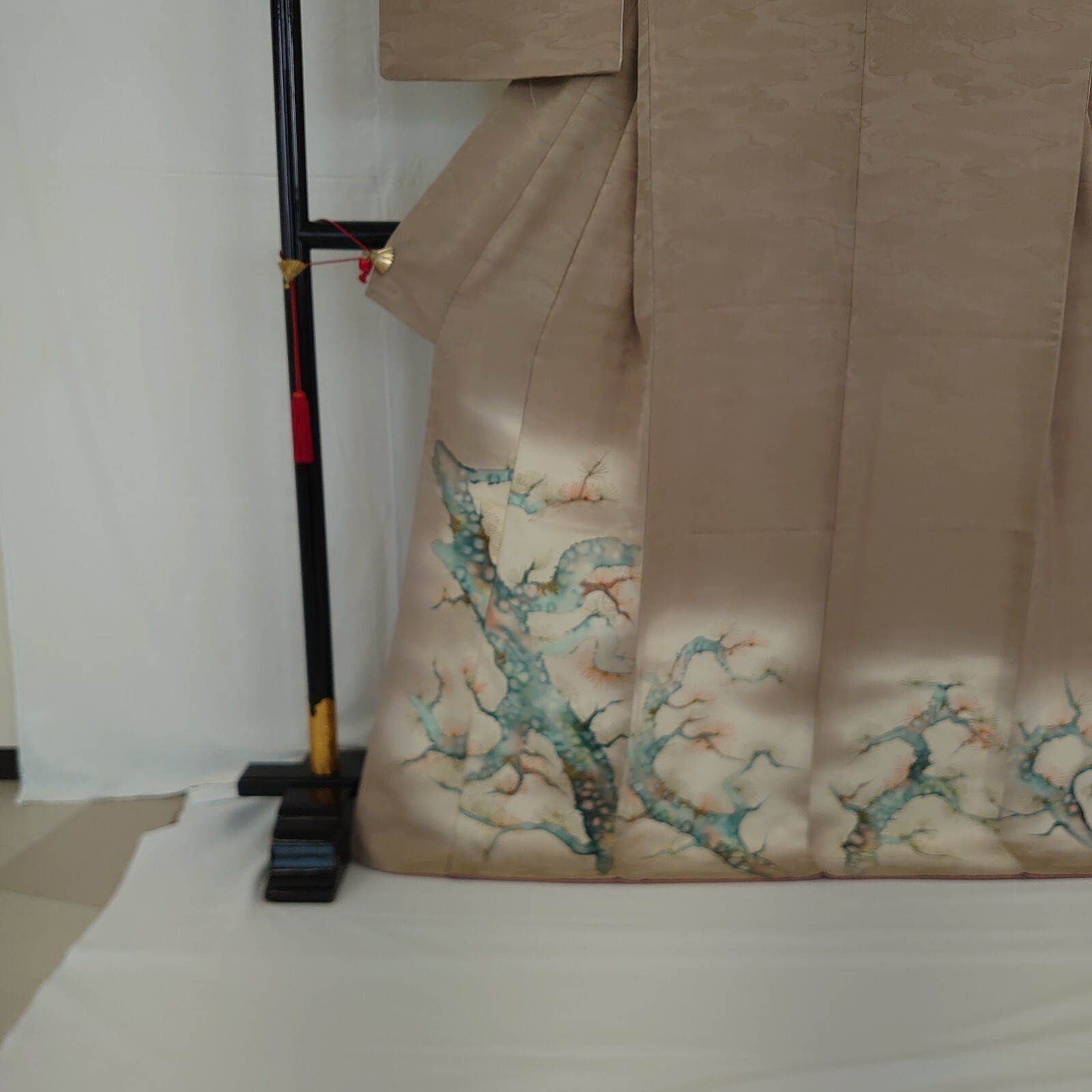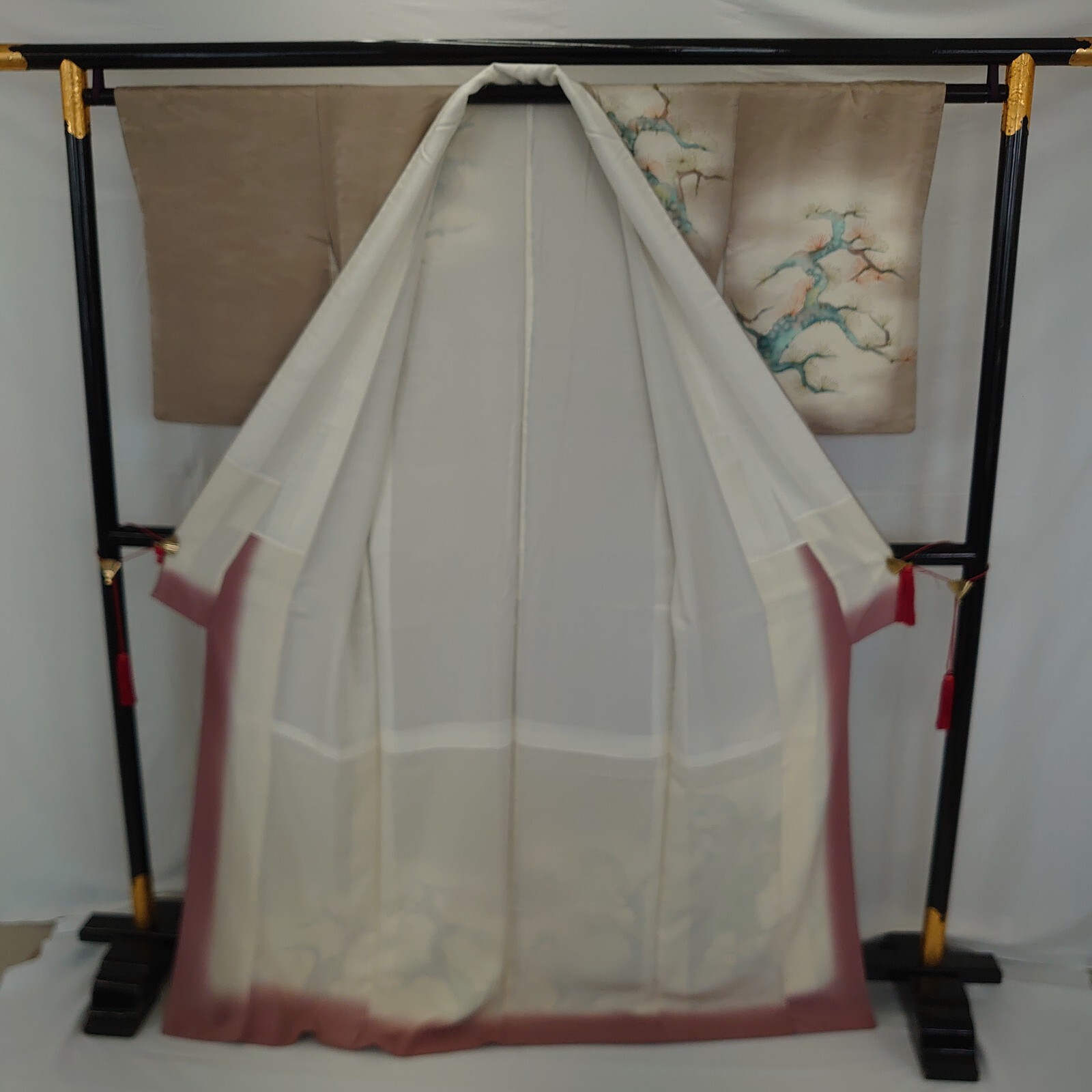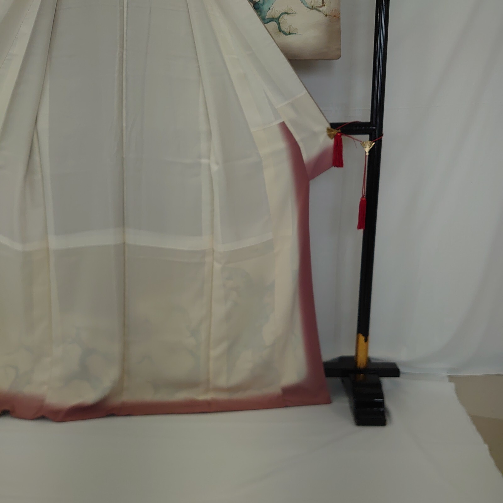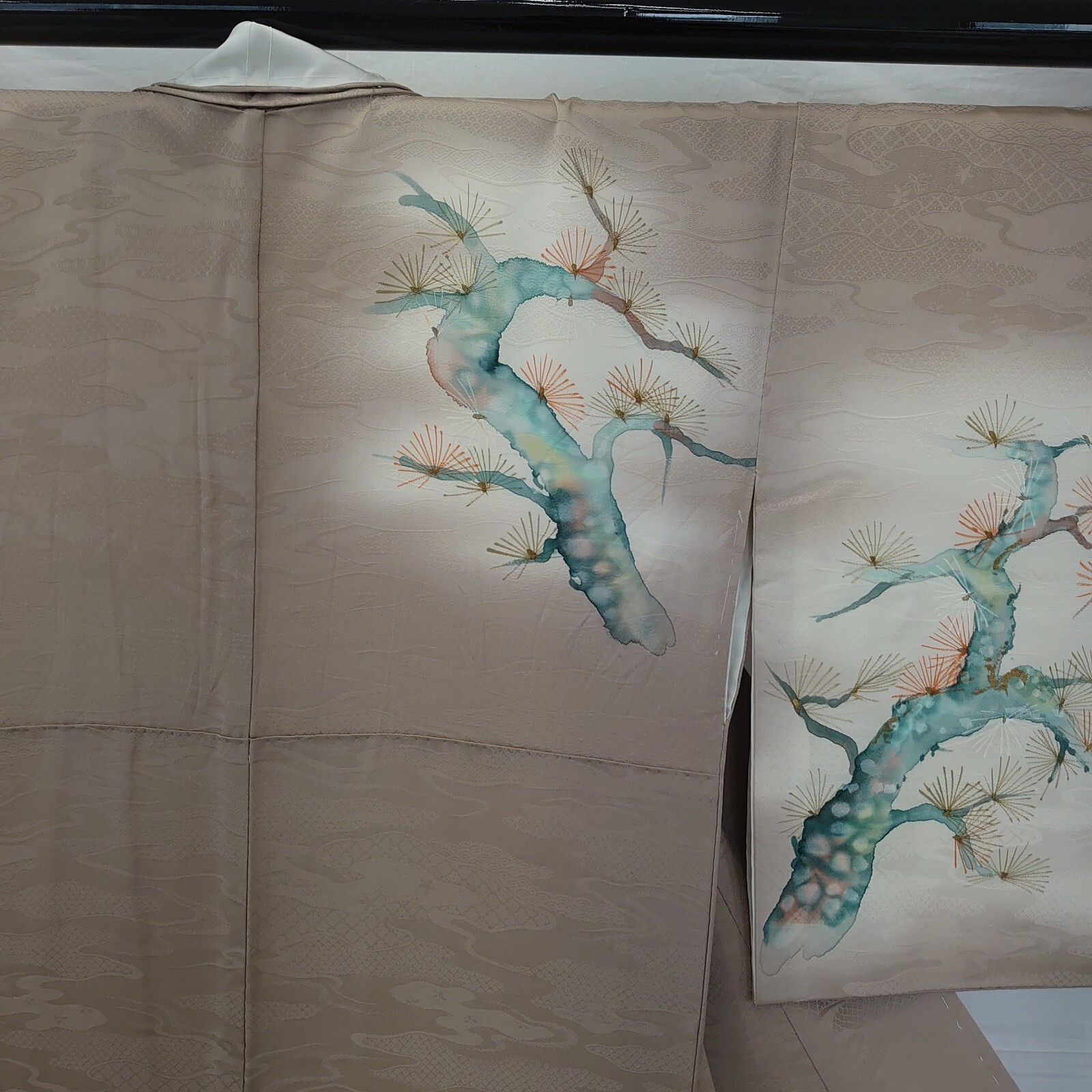 Japanese Vintage Kimono silk gray expensive tradition houmonngi Height 66.53in