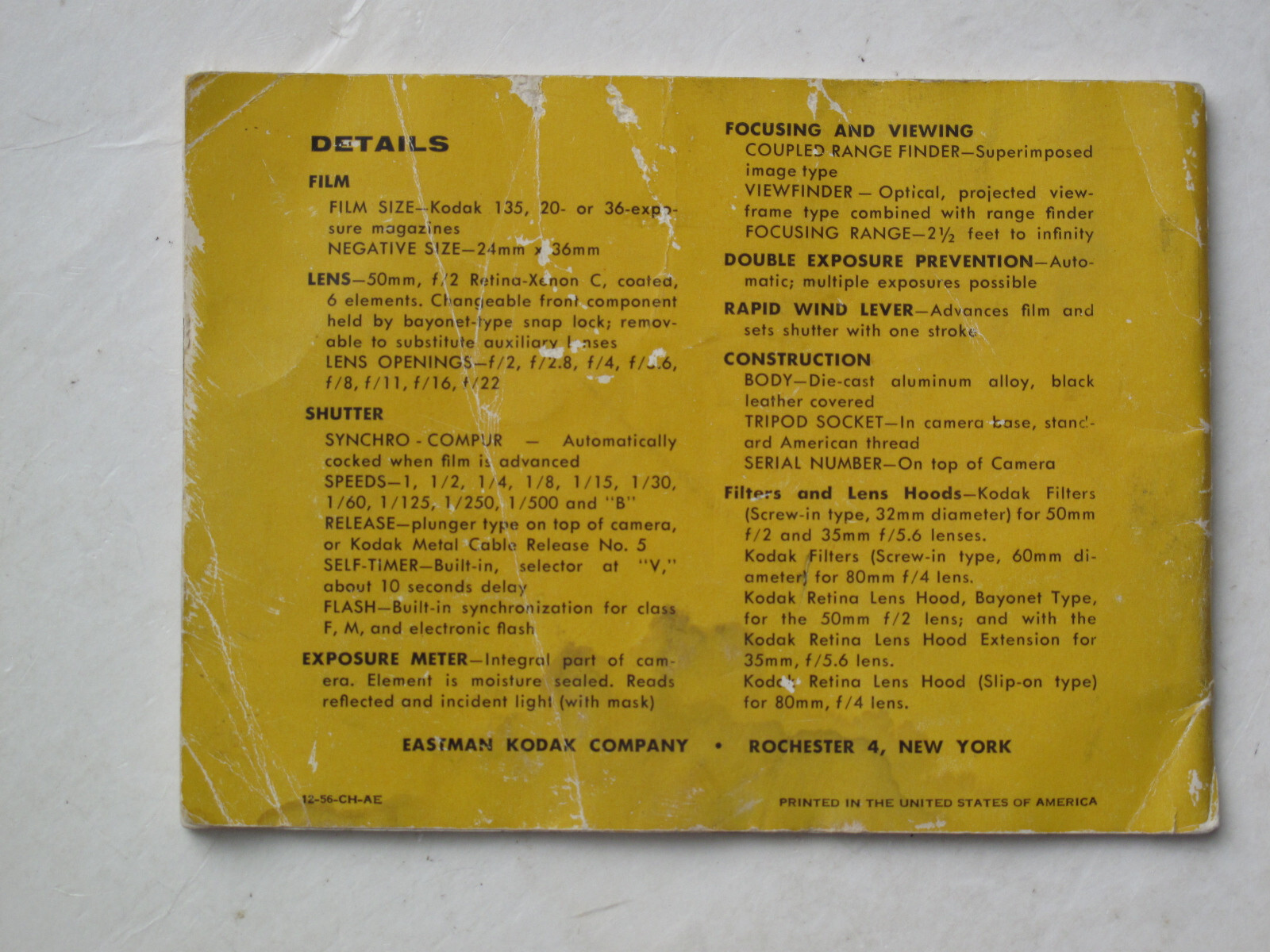 Kodak Retina IIIc instruction manual, US SELLER LQQK