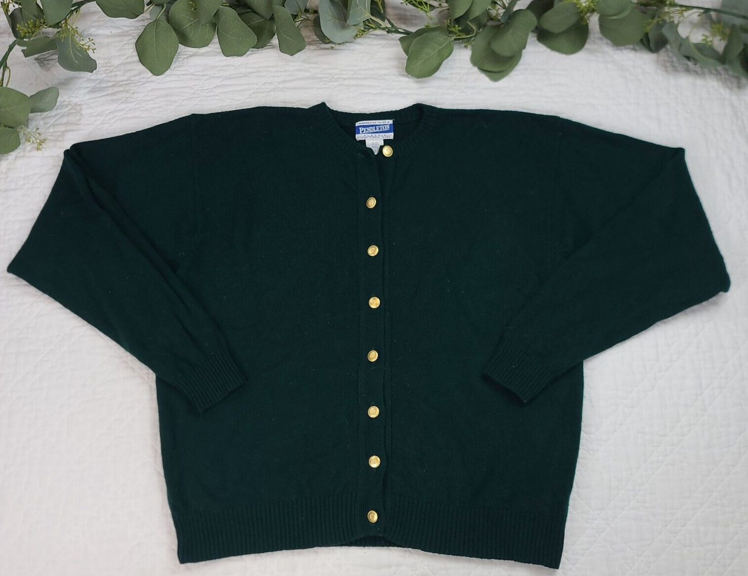 VTG Pendleton Womens Green Wool Button Up Cardigan Sweater Size L