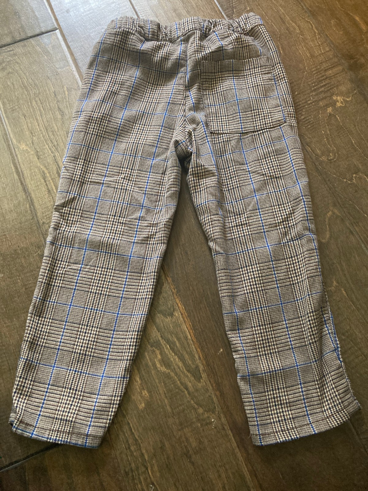 H M boy's 4T Straight Cut Joggers dressy pants in beige blue plaid - drawstring