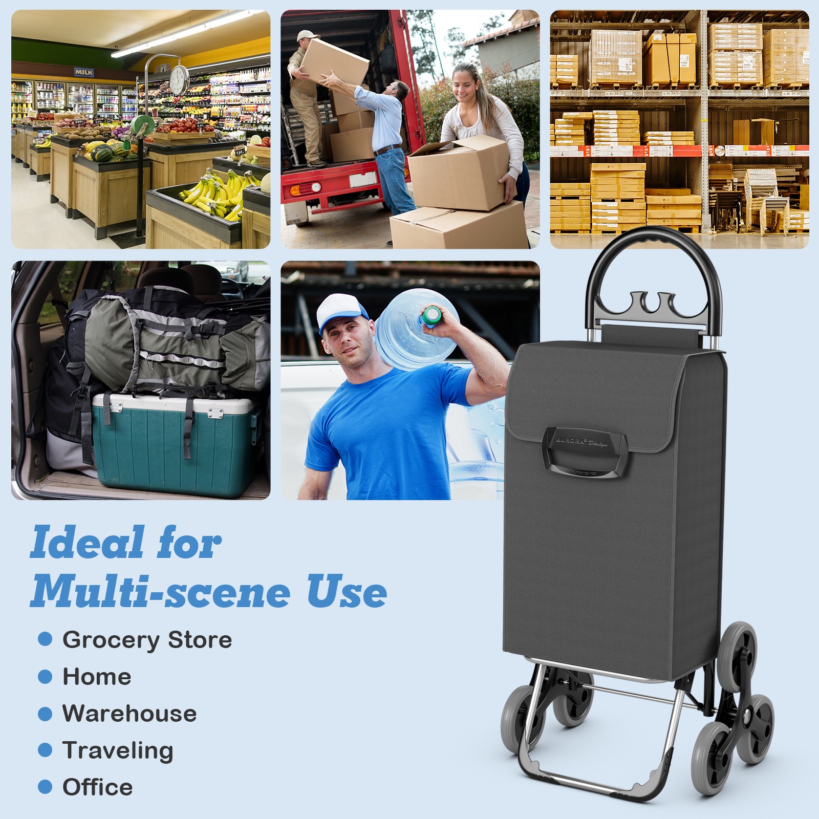 Folding Stair Climbing Shopping Cart Utility Hand Truck w/Removable Bag Handle