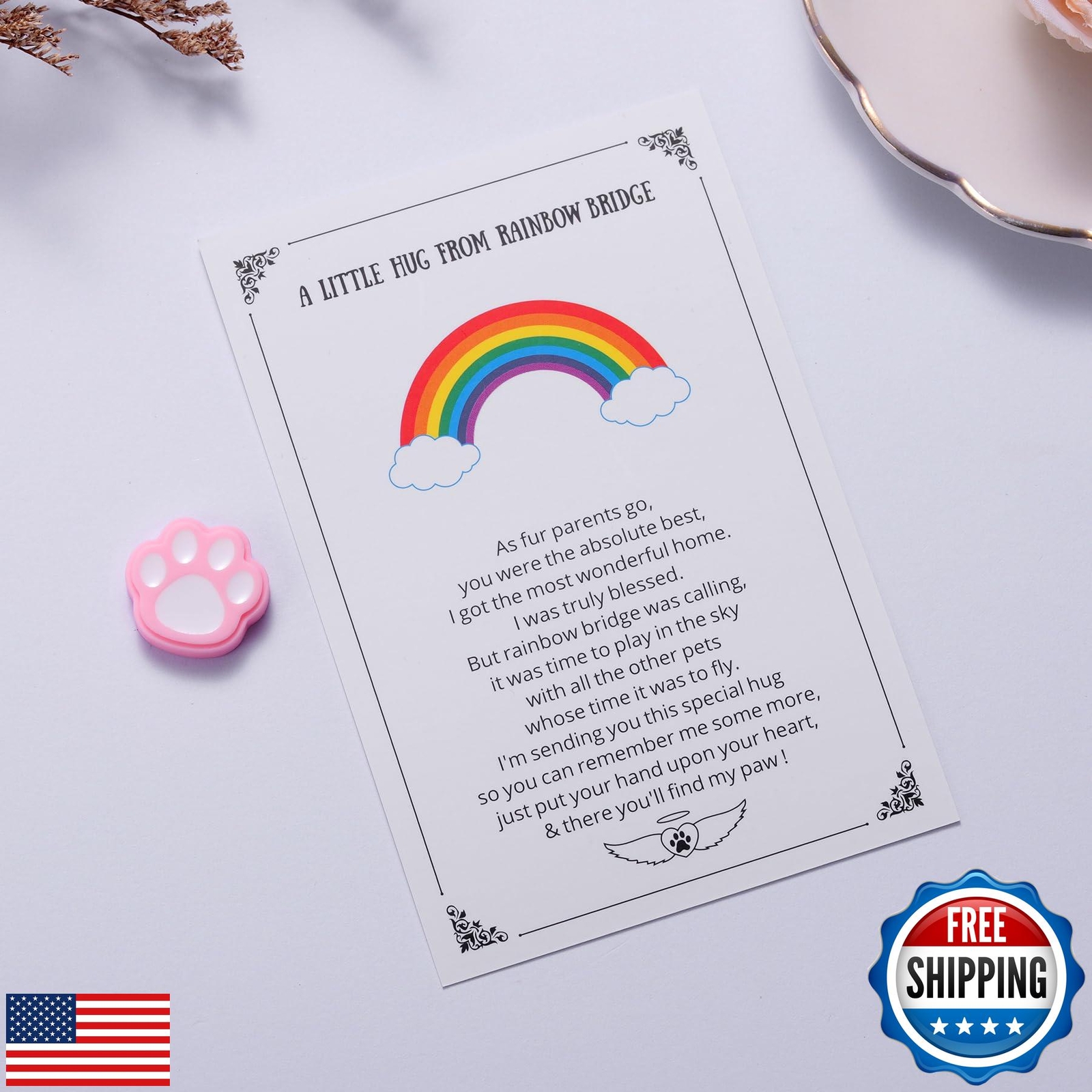 Pet Memorial Keepsake, Rainbow Bridge Pocket Hug with Paw Print Token, Sympat