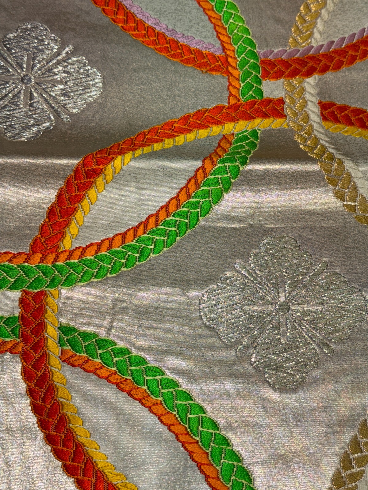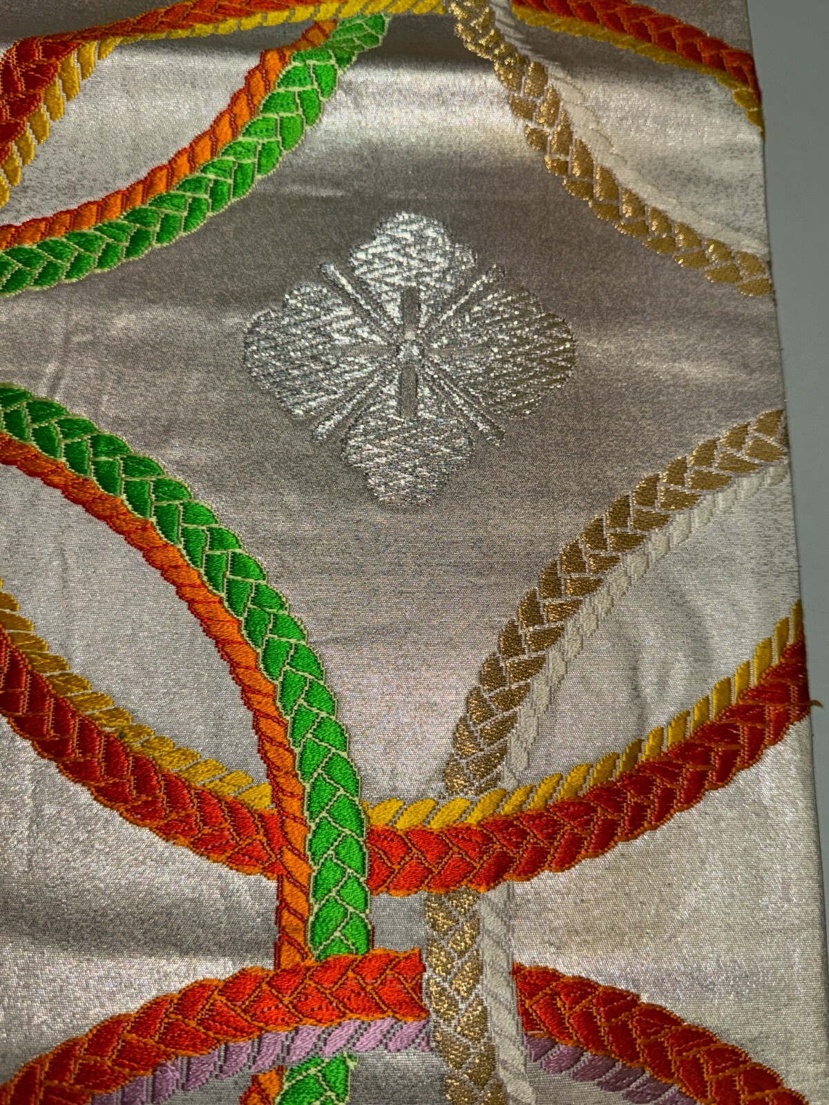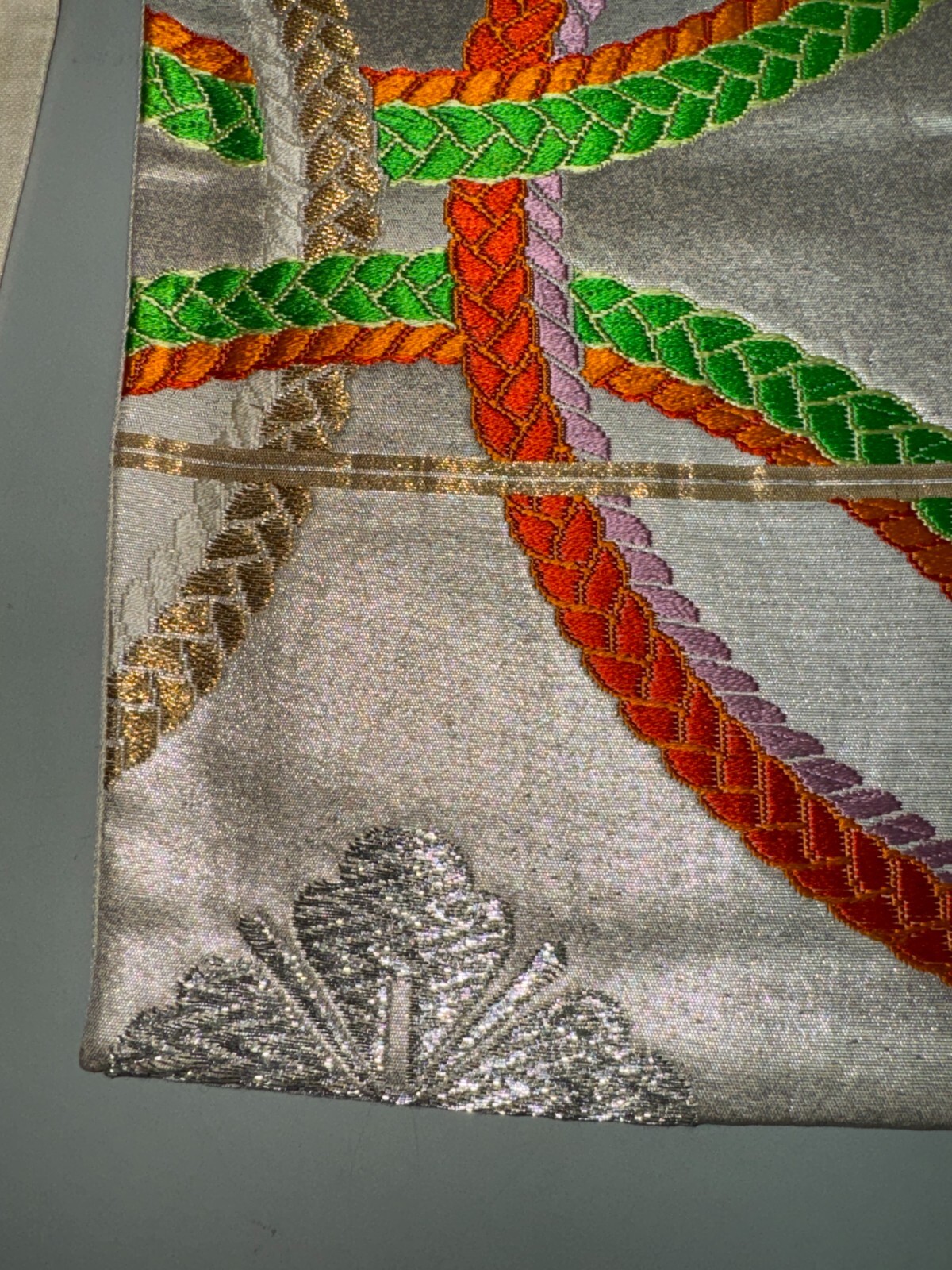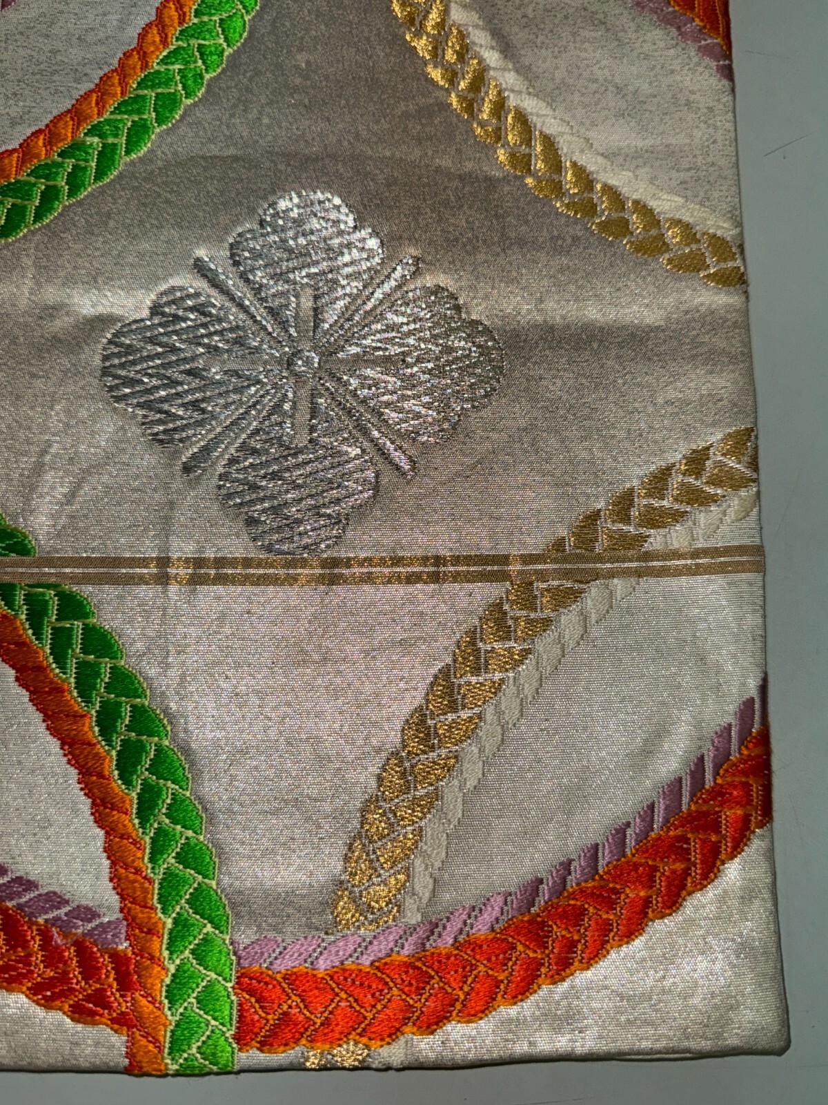 как выглядит Japanese Vintage Kimono Fukuro Obi silk Silver expensive Embroidery Dirt164x11in фото
