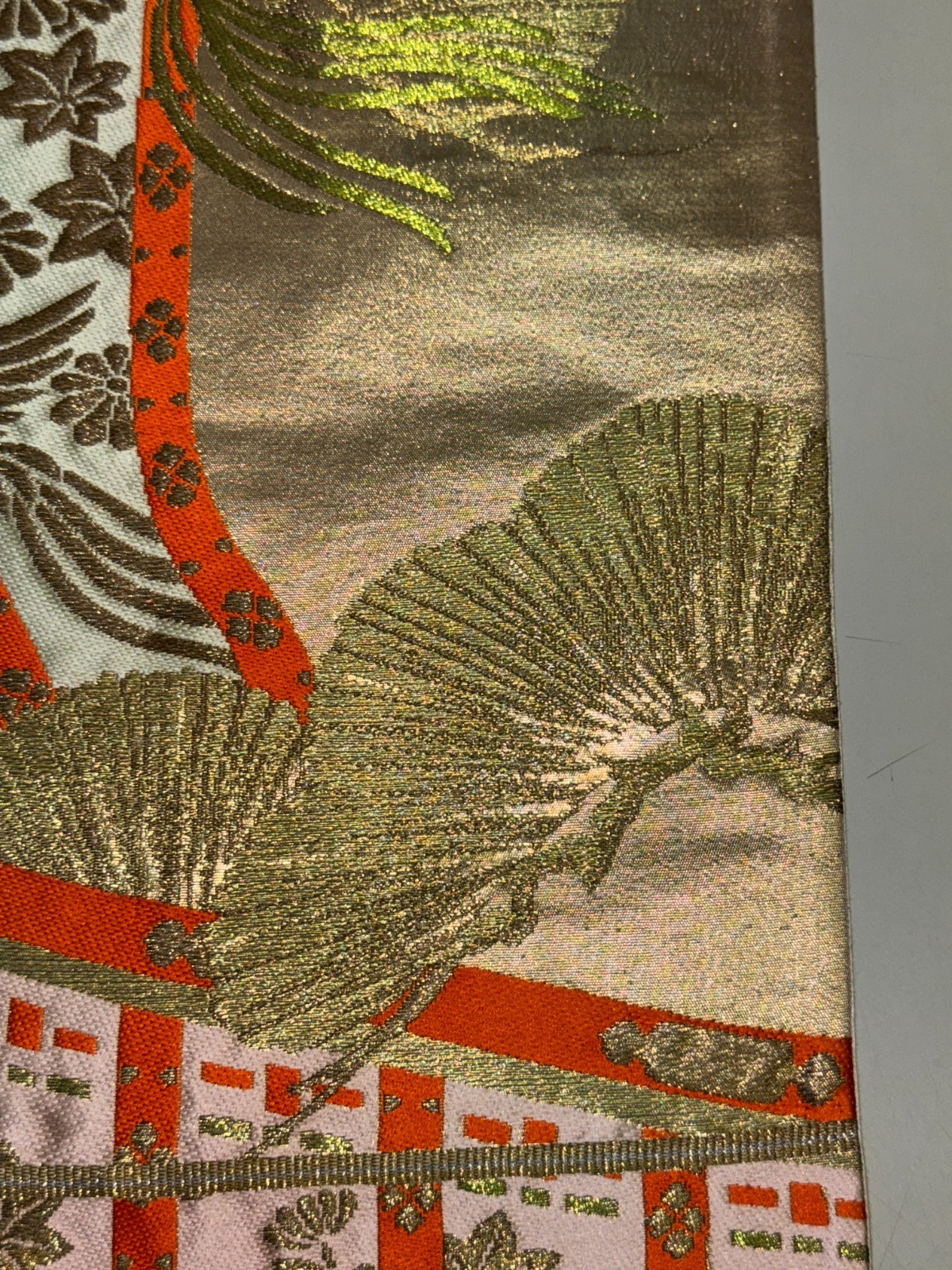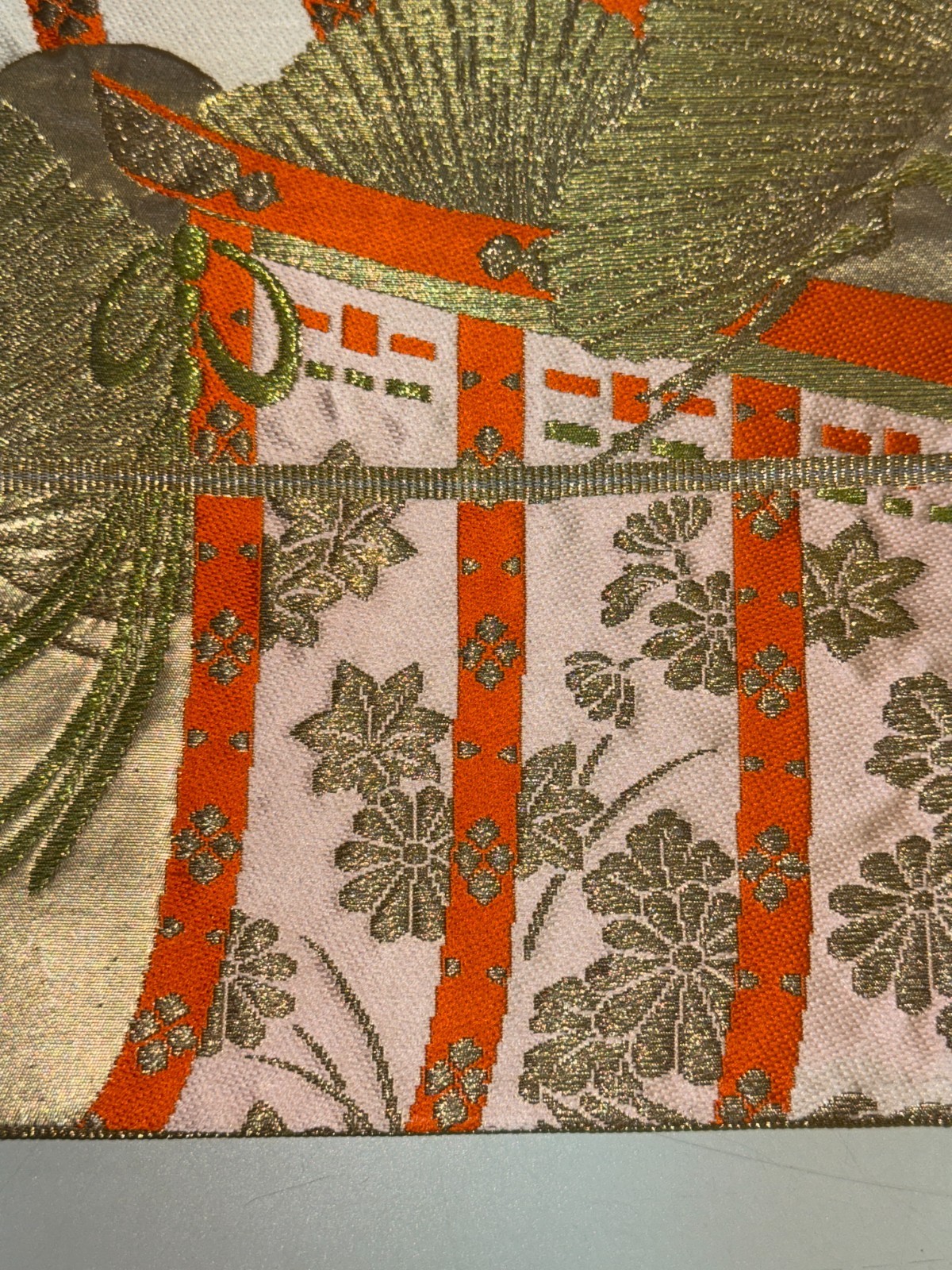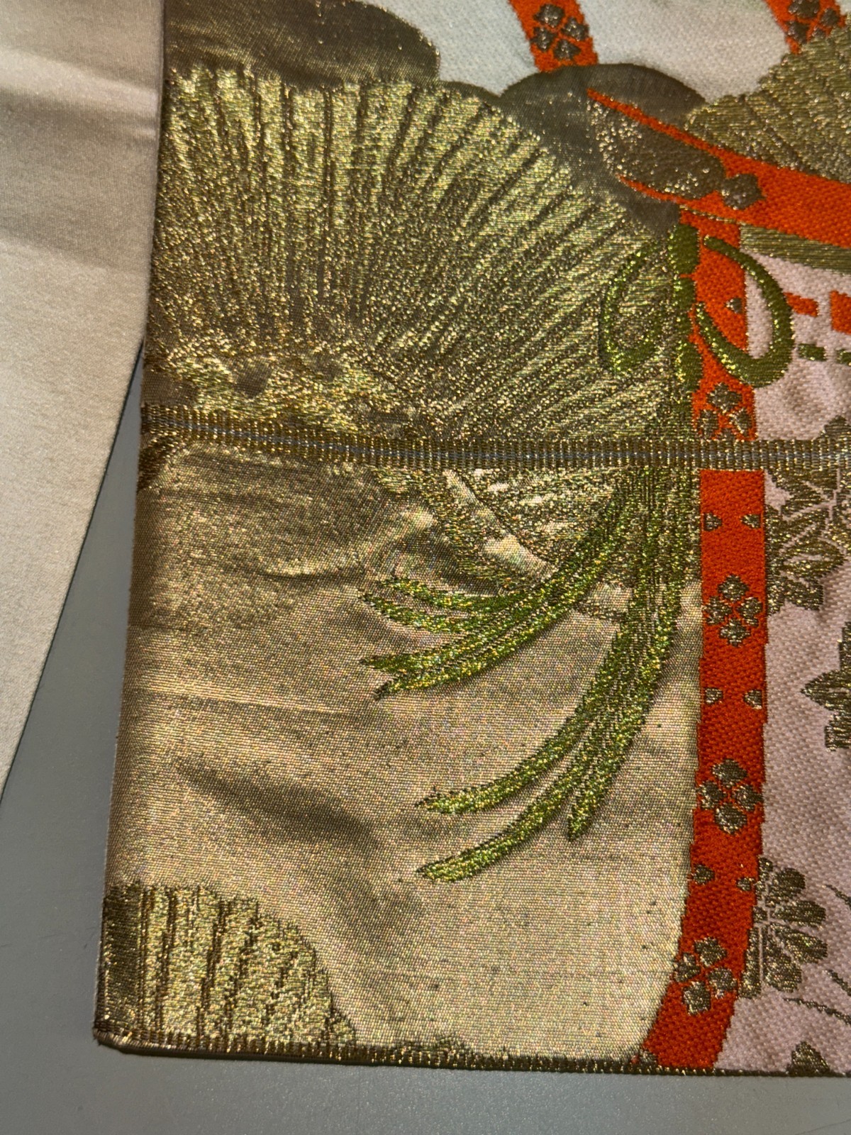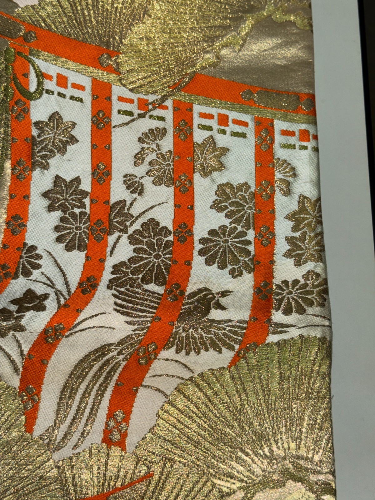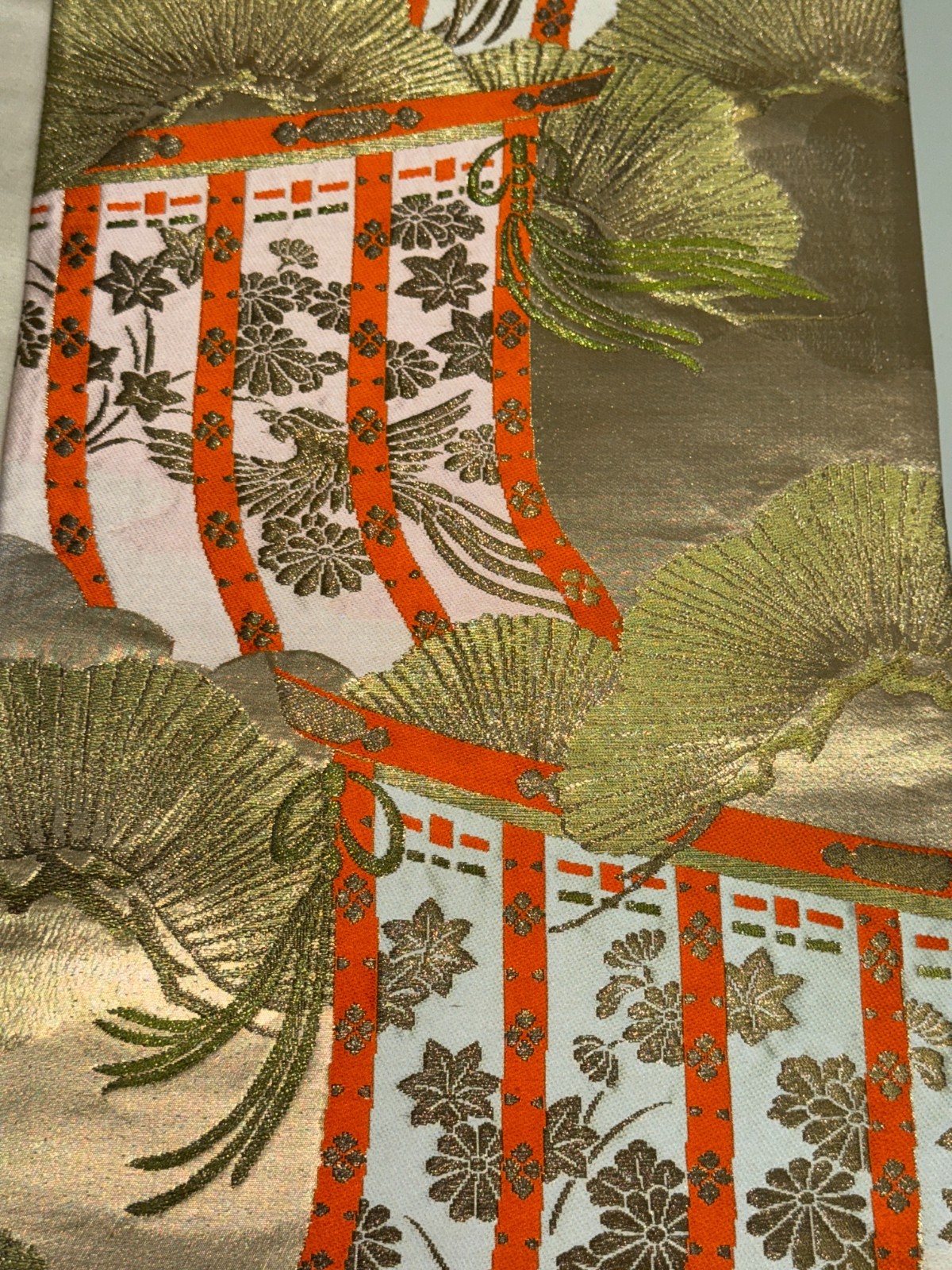 как выглядит Japanese Vintage Kimono Fukuro Obi silk gold expensive embroidery 162.9x11.8in фото