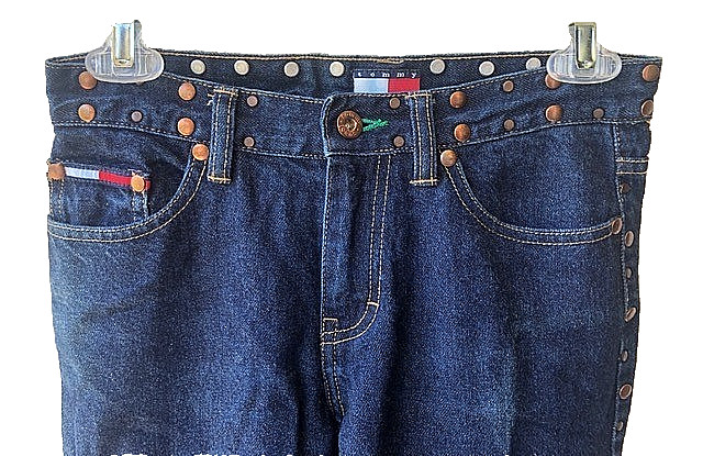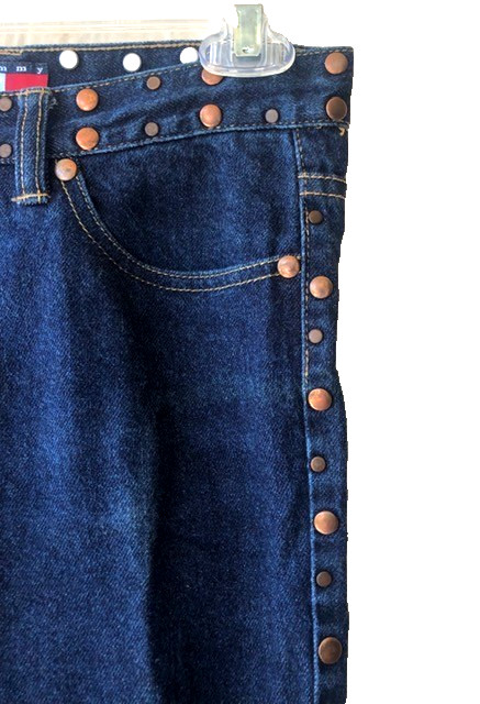 как выглядит Tommy Hilfiger Size 1 Flare Leg 27 x 32 Blue Denim Jeans w/ MULTIPLE Brass Studs фото