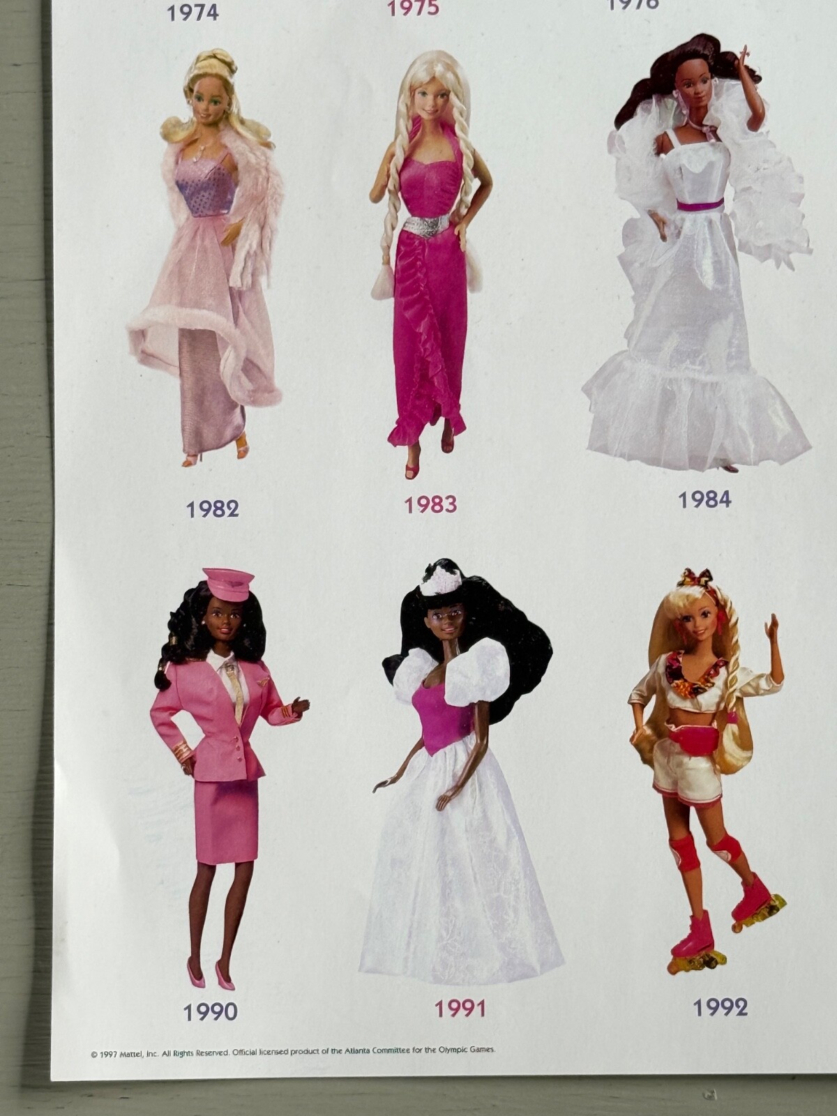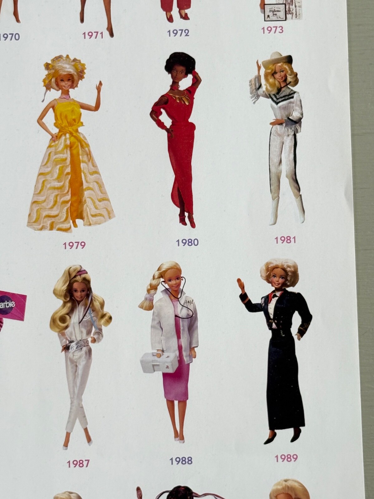 Vintage Growing Up With Barbie Doll from 1959-1997 Poster Mattel 16x20" Wall Art