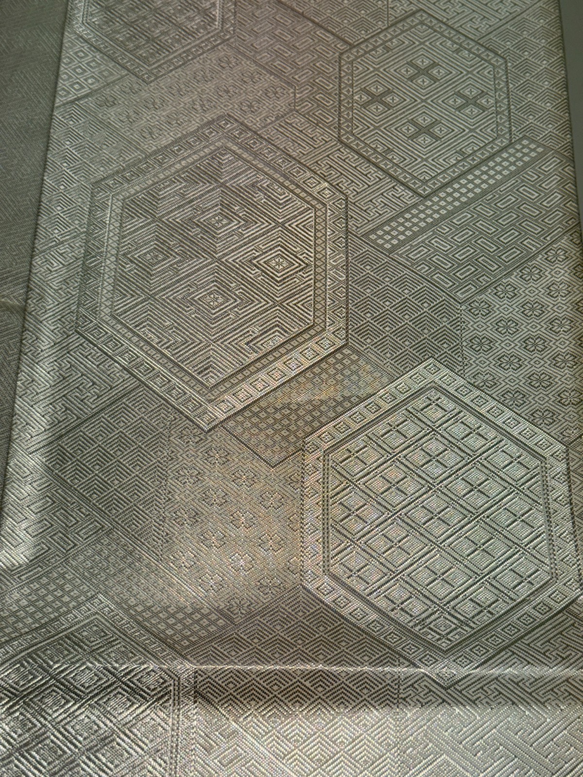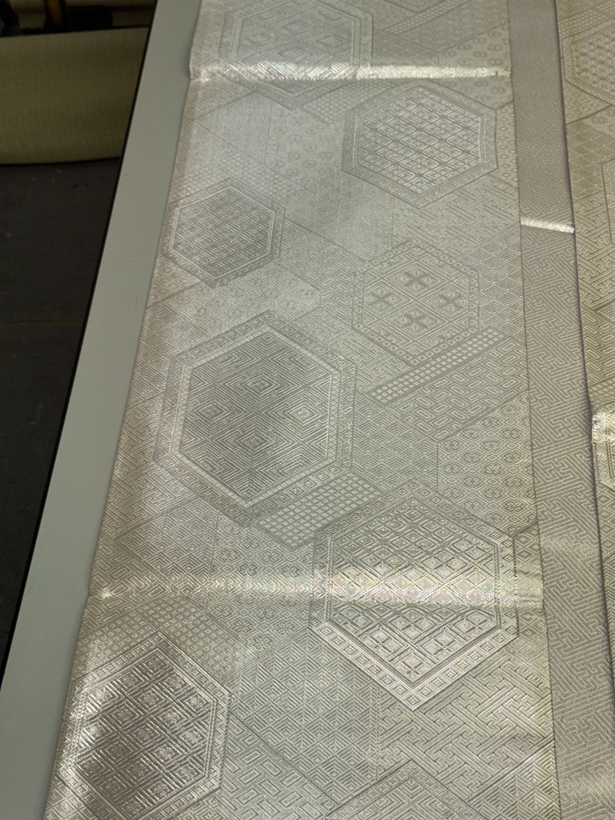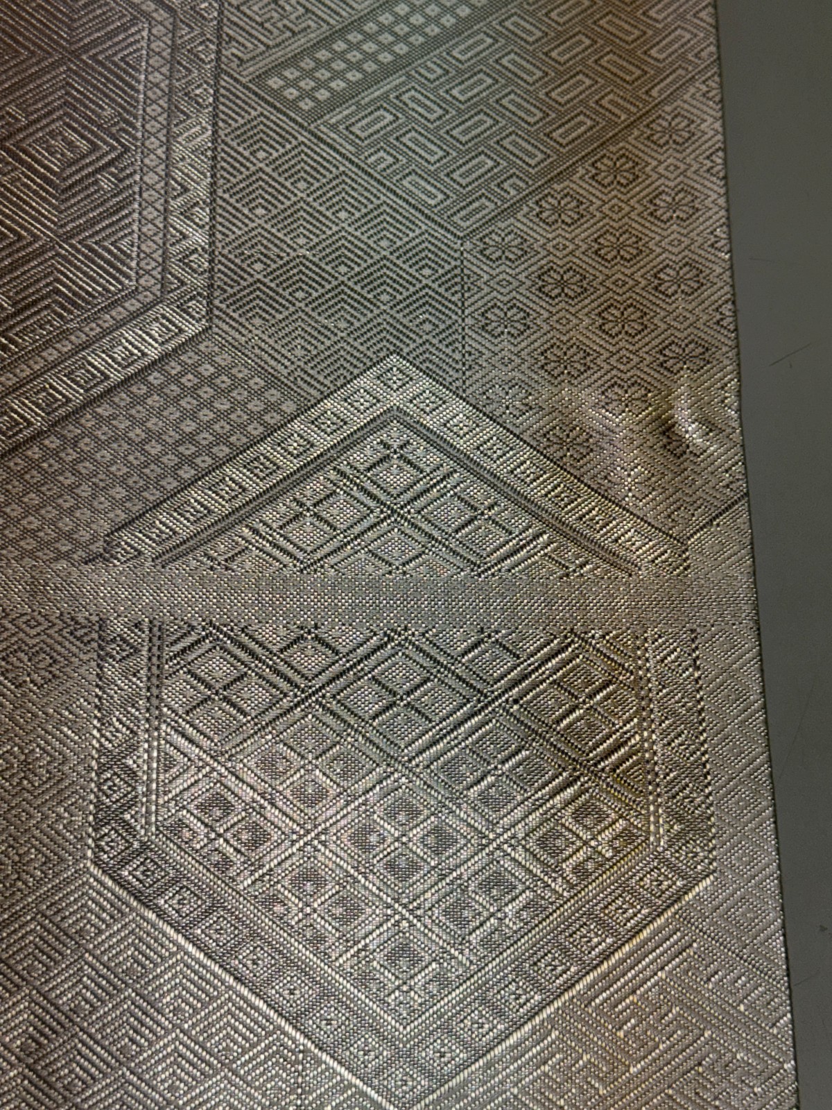 как выглядит Japanese Vintage Kimono Fukuro Obi Silk Silver Traditional Authentic 173x12in фото