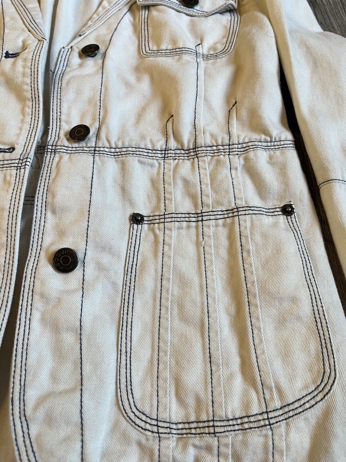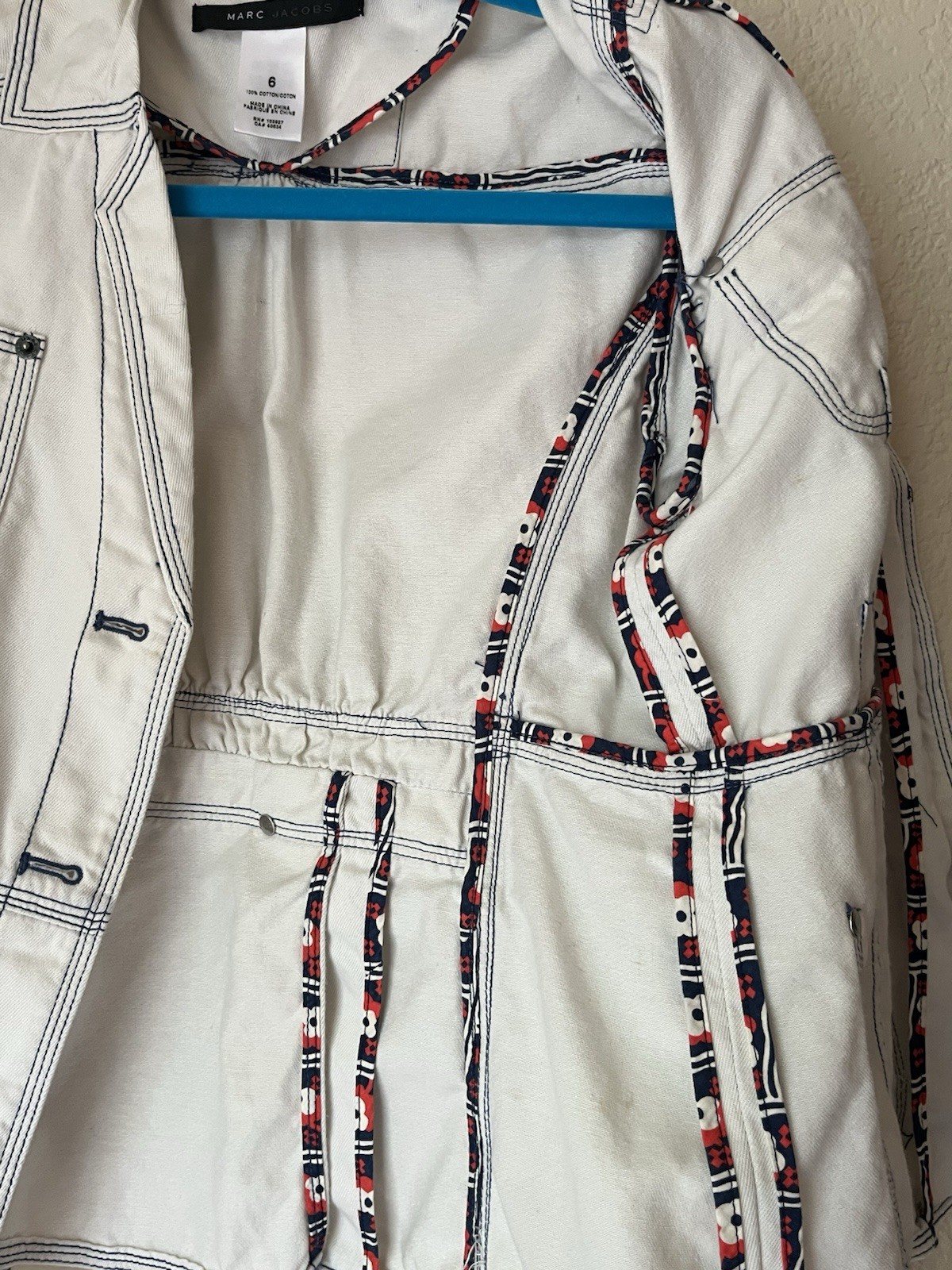 как выглядит Marc Jacobs, white denim fitted jacket, blue stitching, size 6 NWT фото