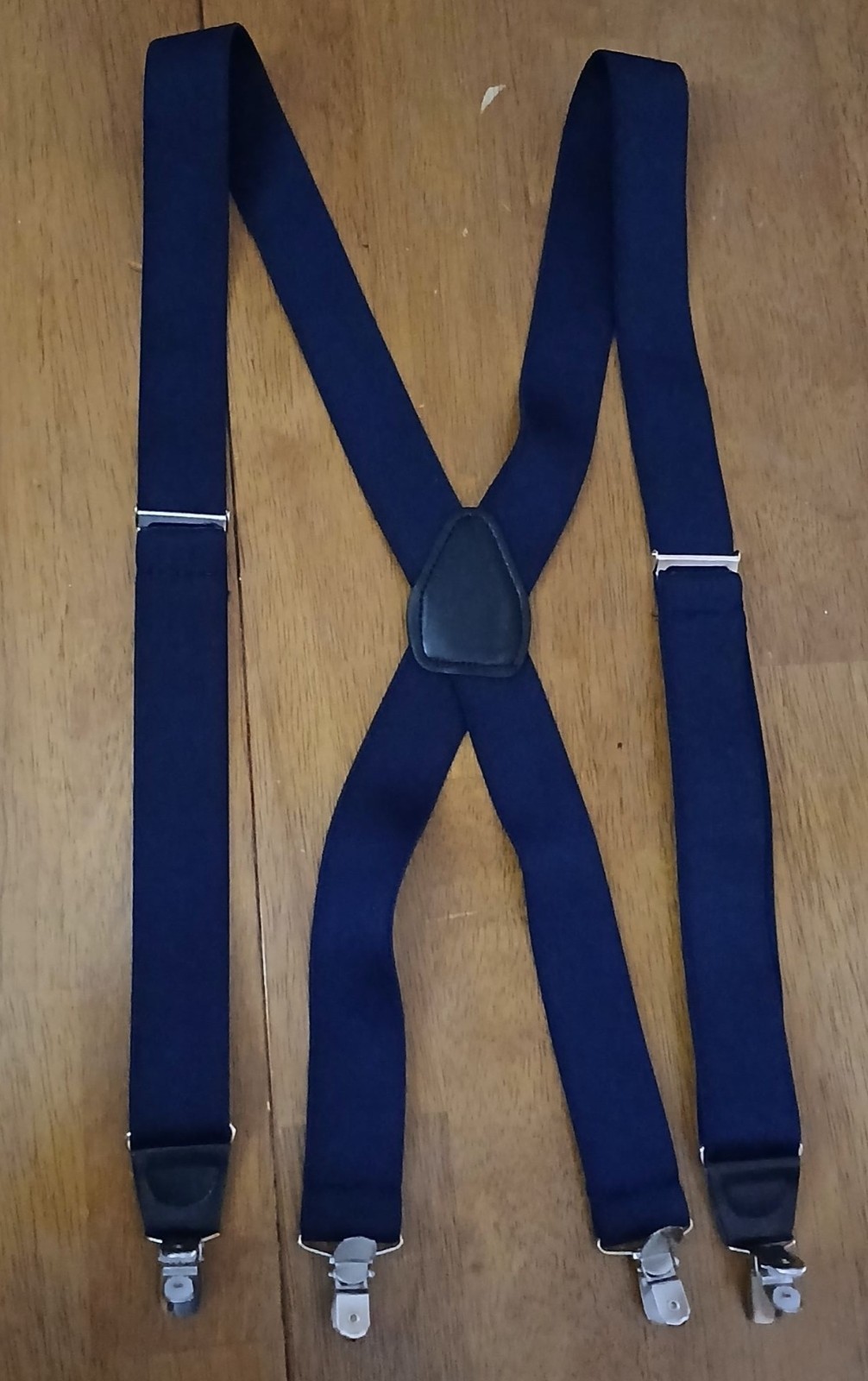 как выглядит Navy Blue Suspenders Silver Clips Black Faux Leather Accents I-11D фото